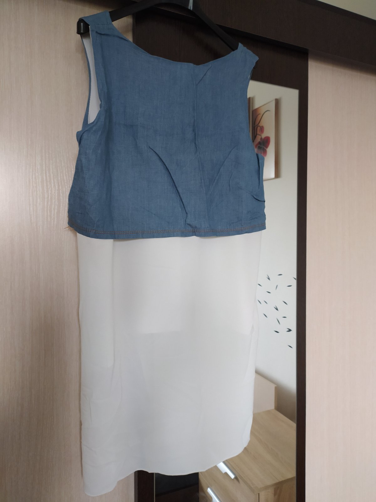 Zaujimava stylova bluzka z kombinovanych materialov akoby riflovina a vzdusna lahka latka Tunika je znacky Pimkie velkost M dlzka 67 cm prsia 47x2 B15