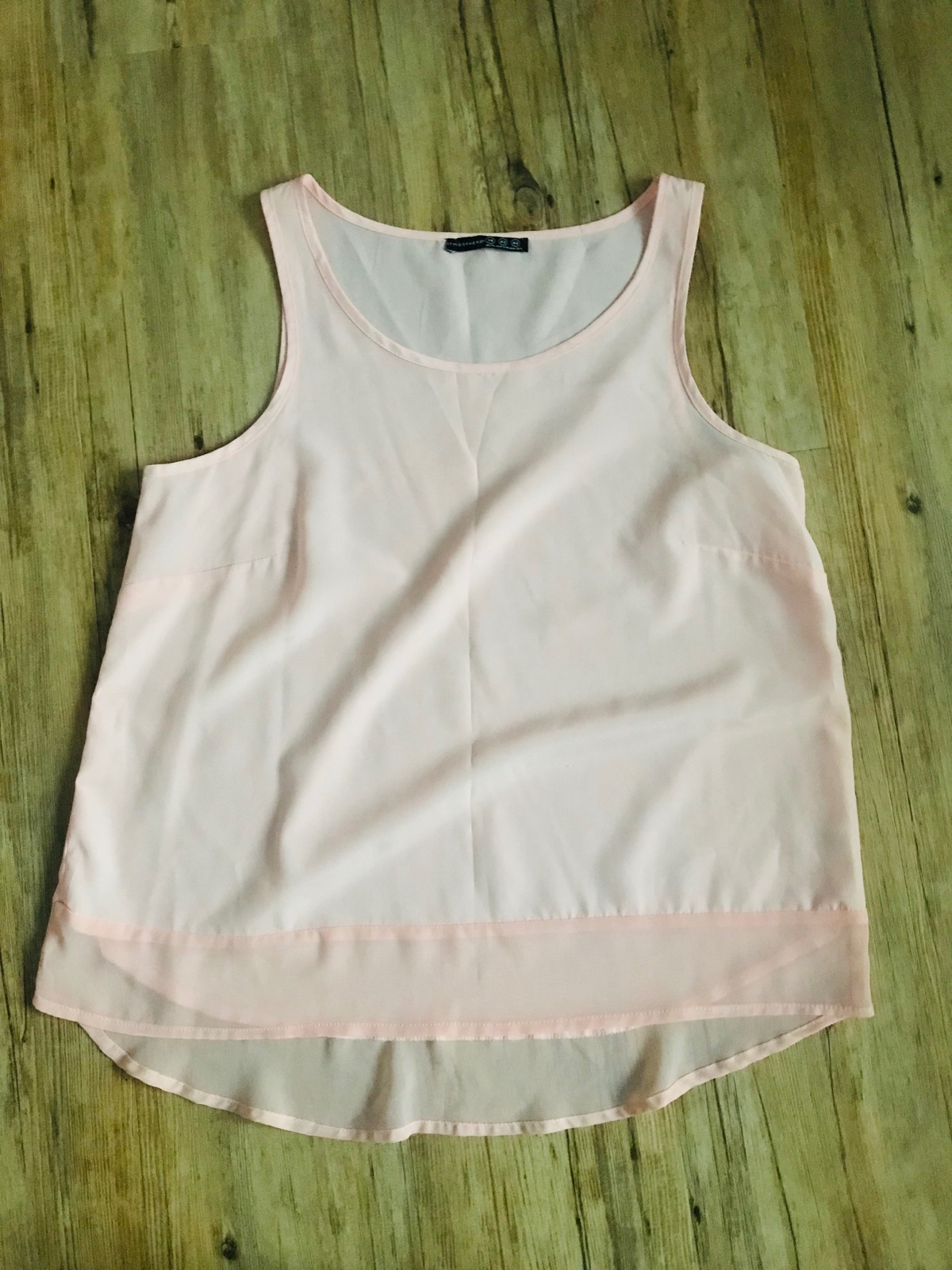 Blúzka nosená minimálne, super stav, bez dier, fľakov, žmolkov, materiál je super - netreba žehliť, šírka v podpazuší 46cm x 2, dĺžka predného dielu 61cm - zadný je dlhší. Materiál je veľmi príjemn...