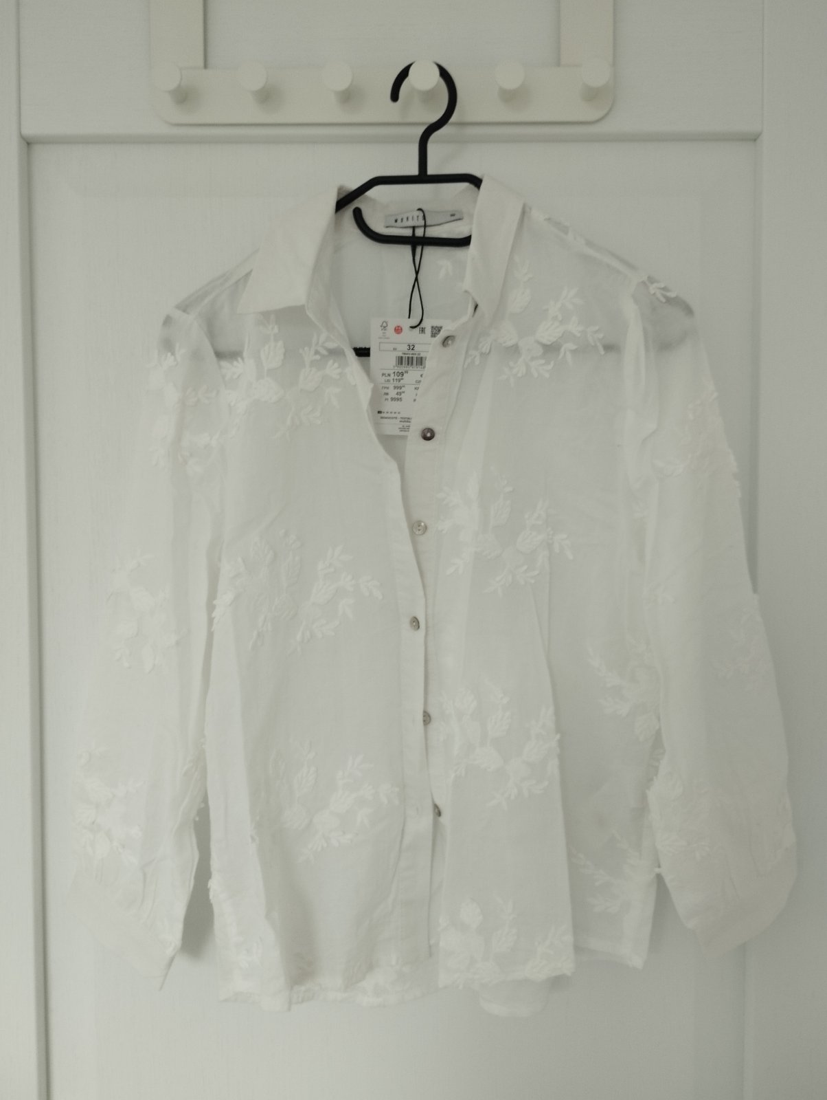 Nová s visačkou. Veľkosť na štítku 32, je to trochu širší strih, aj rukávy sú širšie, dĺžka je kratšia. Na požiadanie premeriam. Je trochu priehľadná.