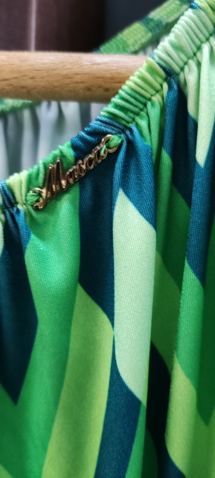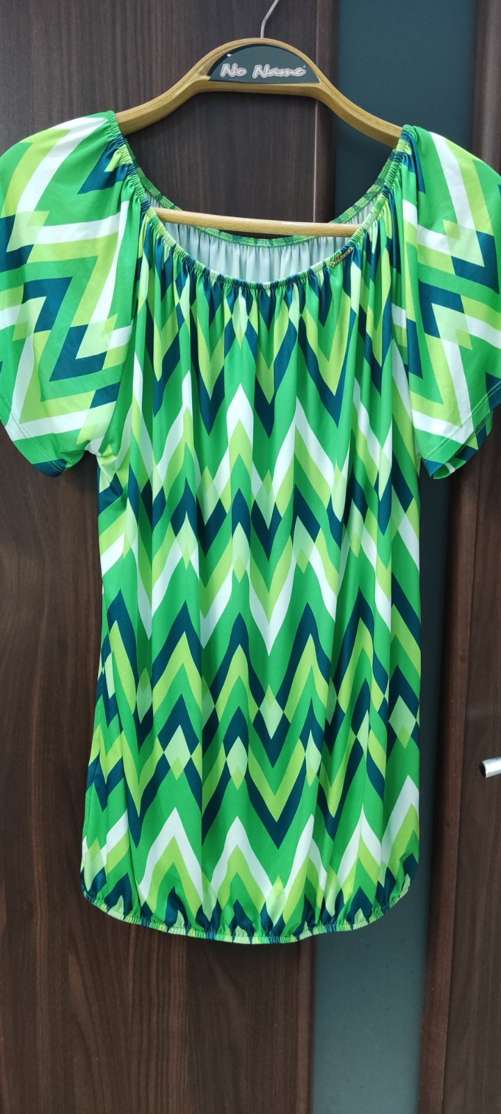 Blúzka Masca voľný strih, dole gumička - kryje nedostatky, dĺžka sa dá regulovať, v oblasti krku gumička - možnosť stiahnuť na ramená.