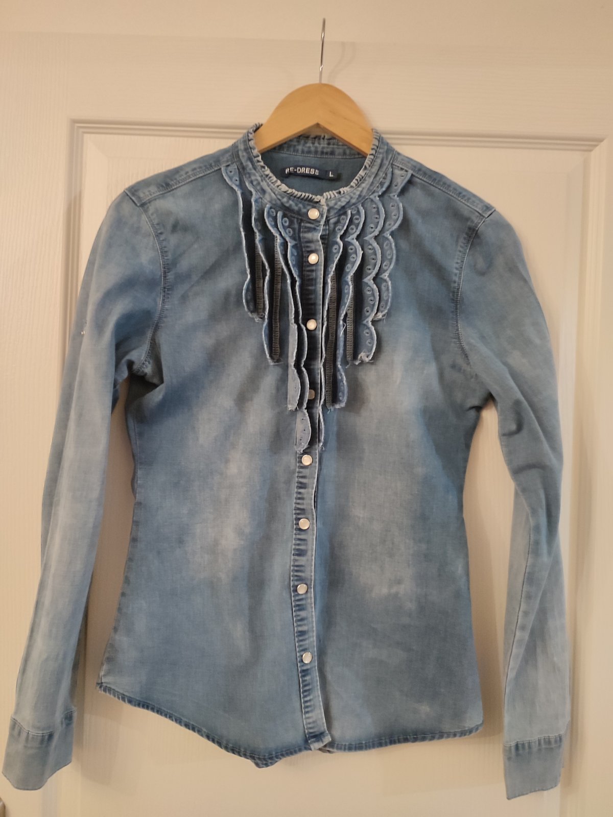 Ako nová. Uvádza sa veľkosť L ale podľa mňa M/S. Šírka pod prsiami 44cm, príjemná tenká riflovina, ktorá sa ešte poddá.