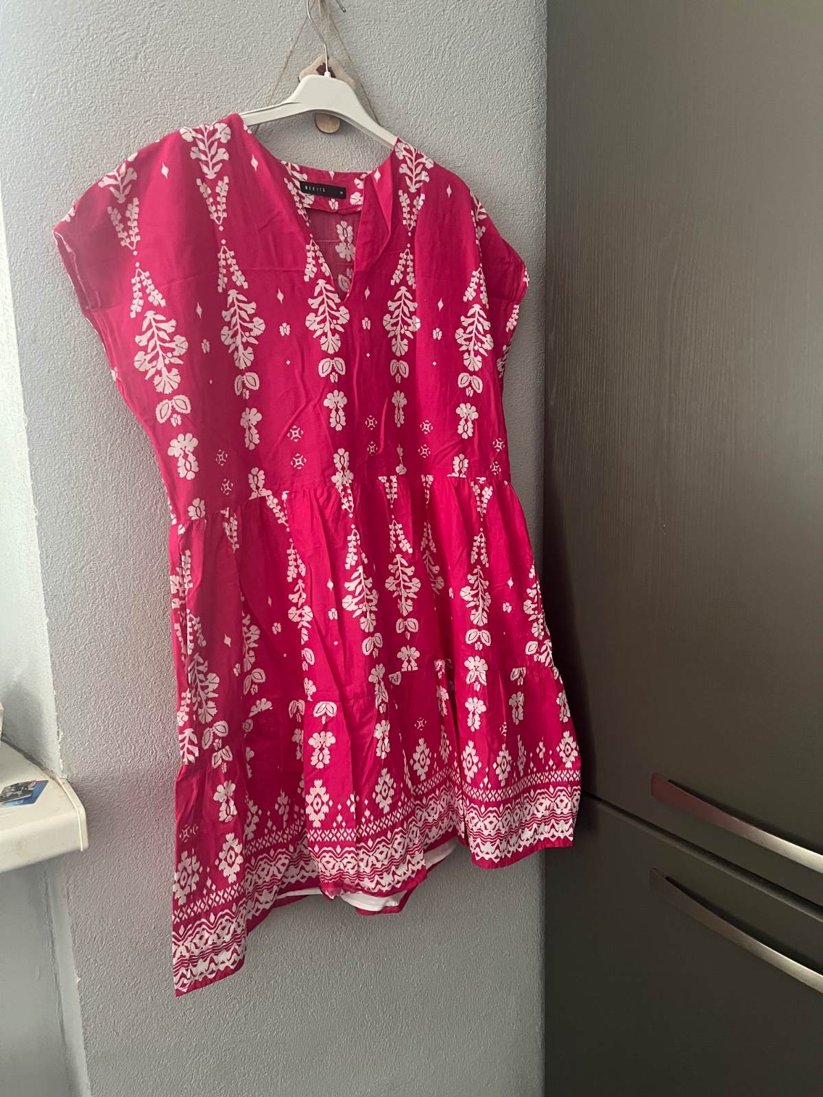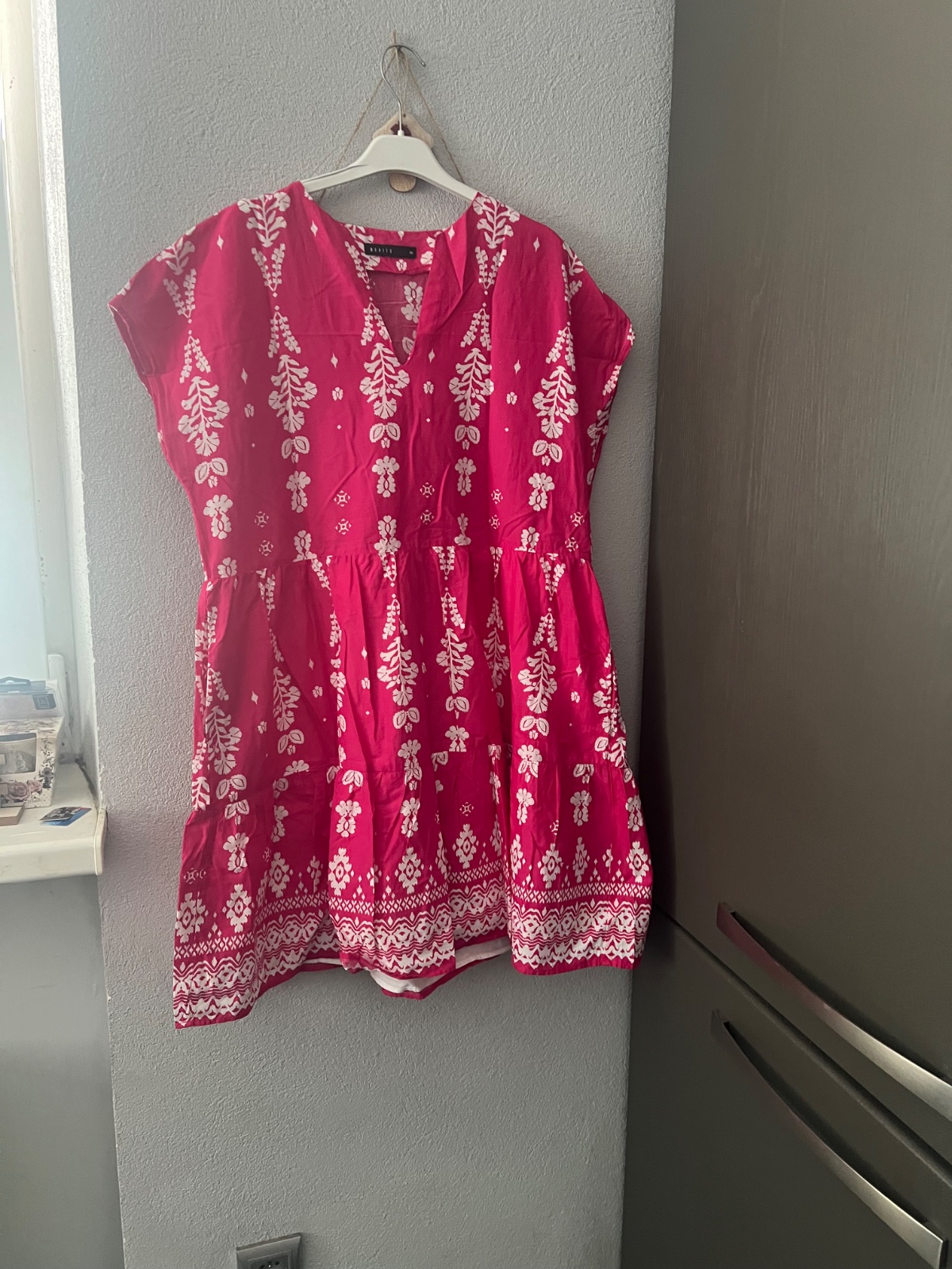 Predám peknú predĺženú košeľu, nosena v super stave.Lahucky,padavy, letný materiál. Veľkosť písaná 38,kľudne oblečie aj veľkosť L,je to taky voľný,oversize strih. Šírka 63cm x2 Dĺžka 74cm /82cm