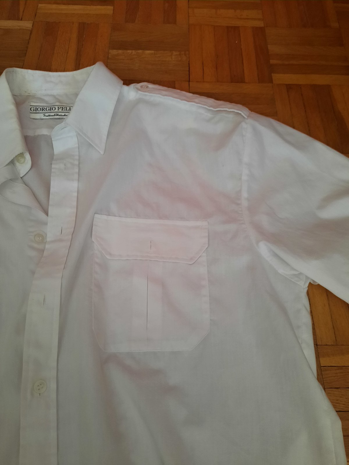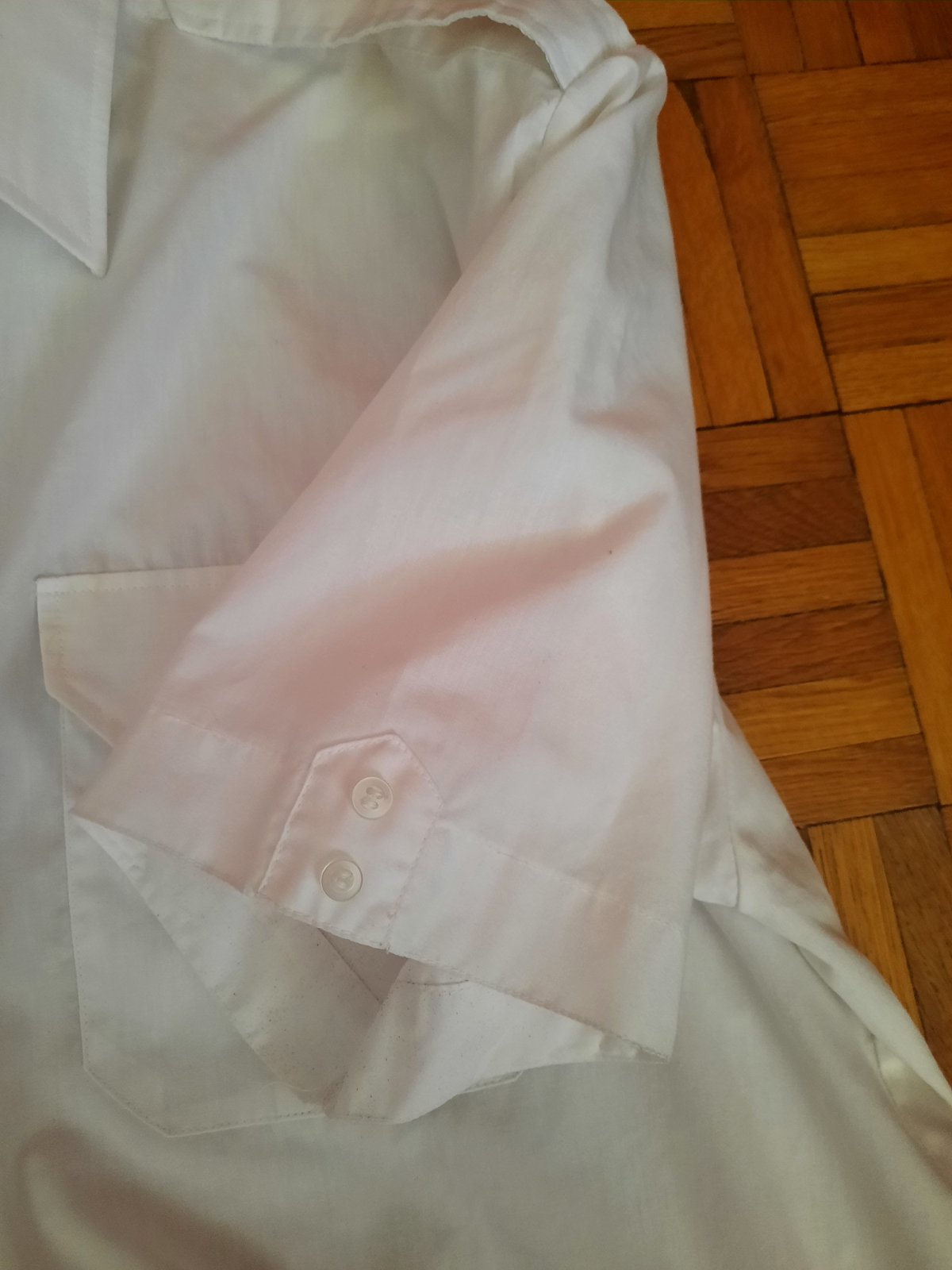 Pánska košeľa bez poškodenia, veľmi dobrý stav. Vpredu 2 vačky na gombíky. Na rukávoch tiež ozdobné gombíky.
