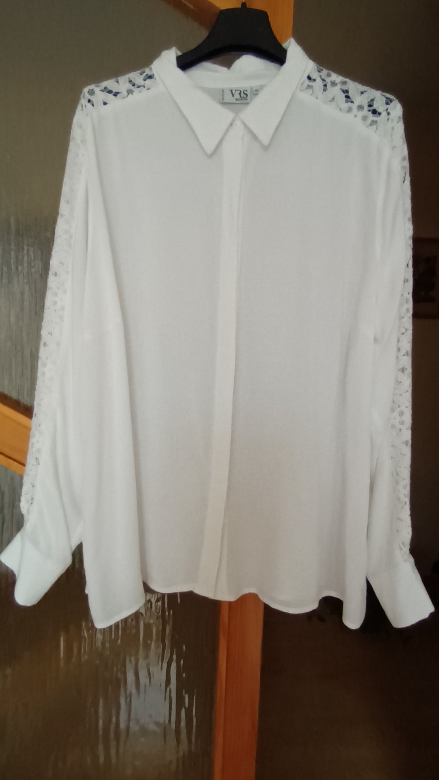 Blúzka v super stave, na rukávoch priehľadná čipka, dĺžka predok 65cm, zadná strana 69cm, podpazušie 63cm