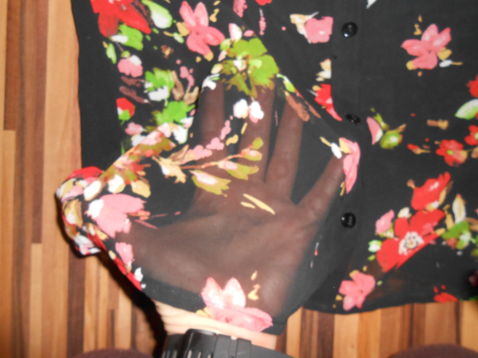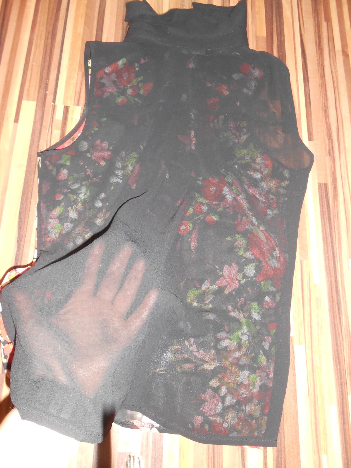 Krásna transparentná blúzka s kvetmi, v top stave, bez dier, fľakov, žmolkov, dĺžka 61cm, šírka v podpazuší 47,5cm x 2, cena + poštovné. (K)