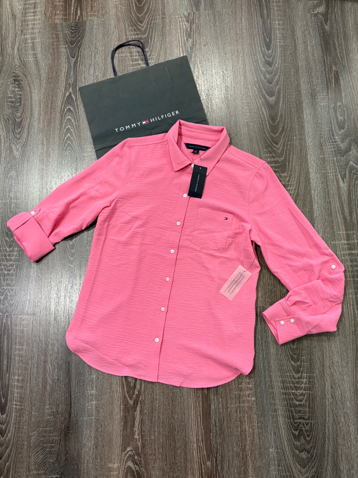 111.Tommy Hilfiger nova damska letna ľahka kosela vo velkosti S,dlzka je 69cm,dlzka rukava od krku je 74cm ada sa zapnut ako 3/4.Sirka v podpazusi je cca 49x2cm