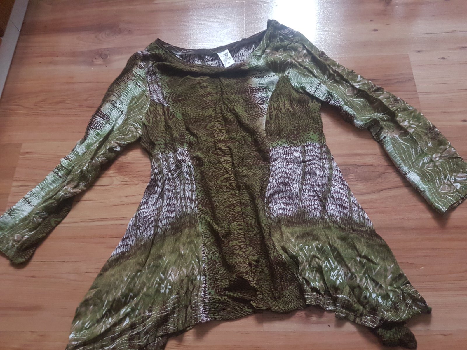 predám blúzku v top stave, materiál je tenký , pri pohybe sa mení farba dĺžka - 72cm, šírka - 36cm, rukávy - 62cm,