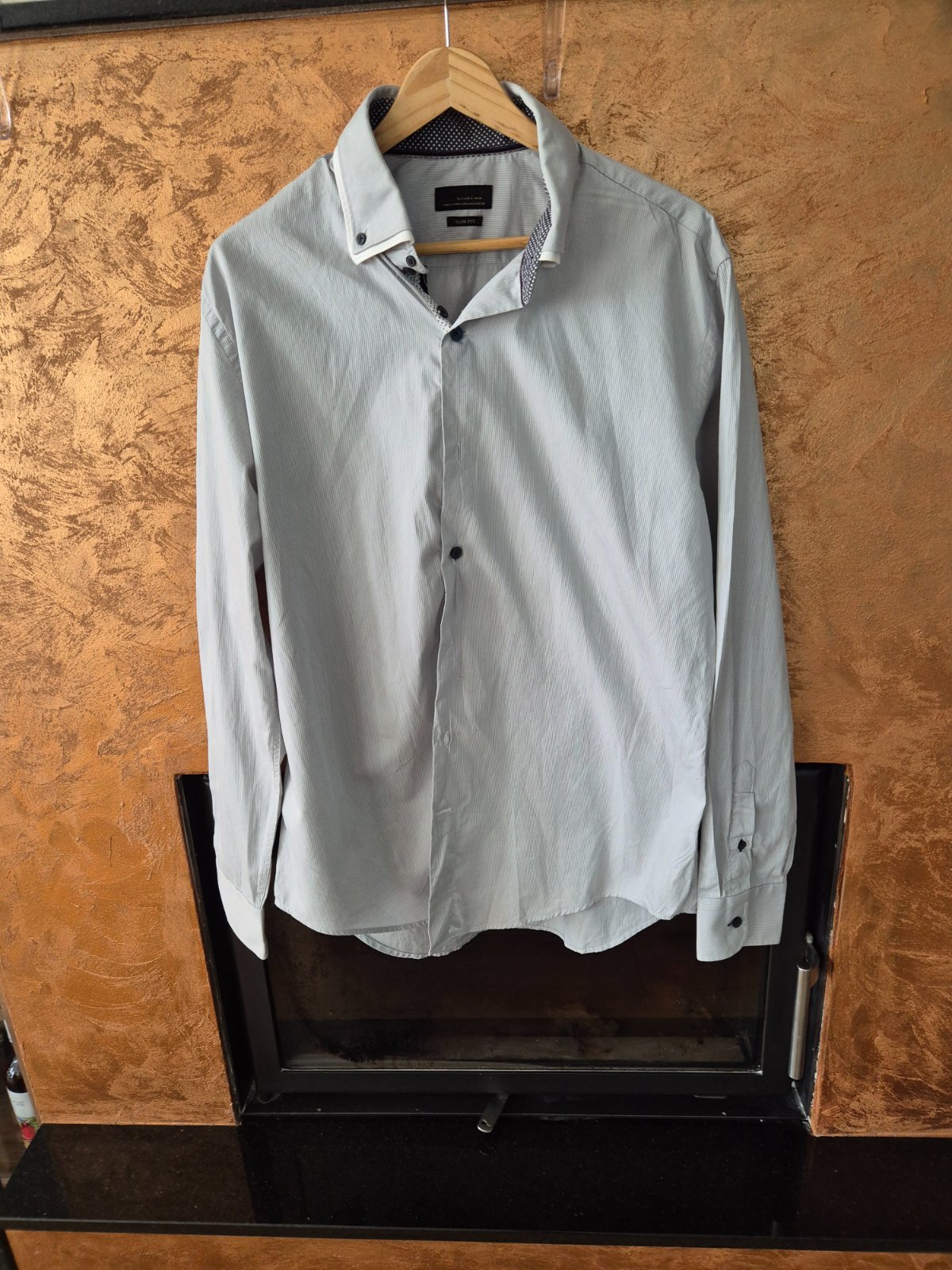 Predám svetlomodrú slim fit košeľu značky Zara, veľkosť M. Košeľa je vo veľmi dobrom stave, málo nosená, bez poškodení. Moderný strih, pekne zvýrazní postavu, vhodná na bežné nosenie aj elegantnejšie príležitosti.