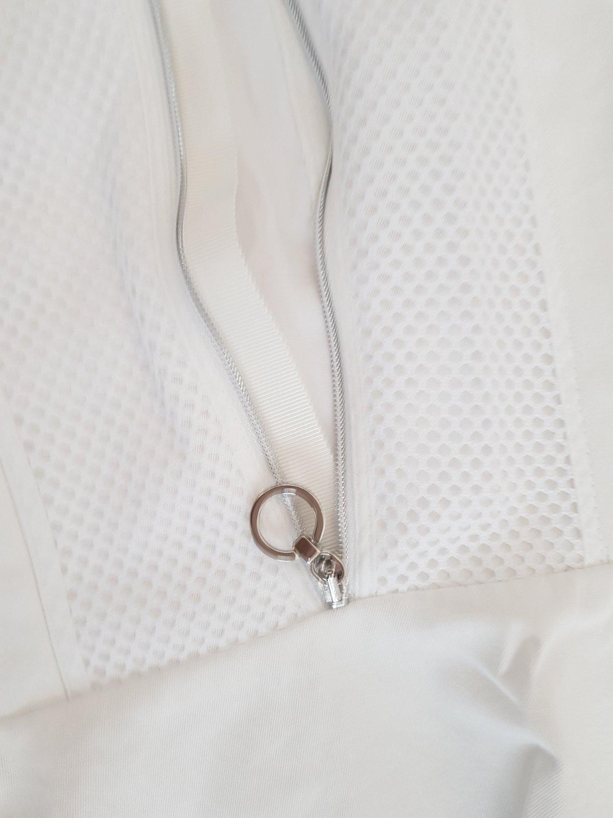 Nadherna bluzka Marc Cain, velkost N3, sedi na S/M. Rukavky elegantne jemny material. Nadherne prepracovany strih z viacerych latok, sedi uzasne. Latka nie je prilis elasticka, preto pozor pri vacsich prsiach, to je aj dovod preco ju uz nevynosim.