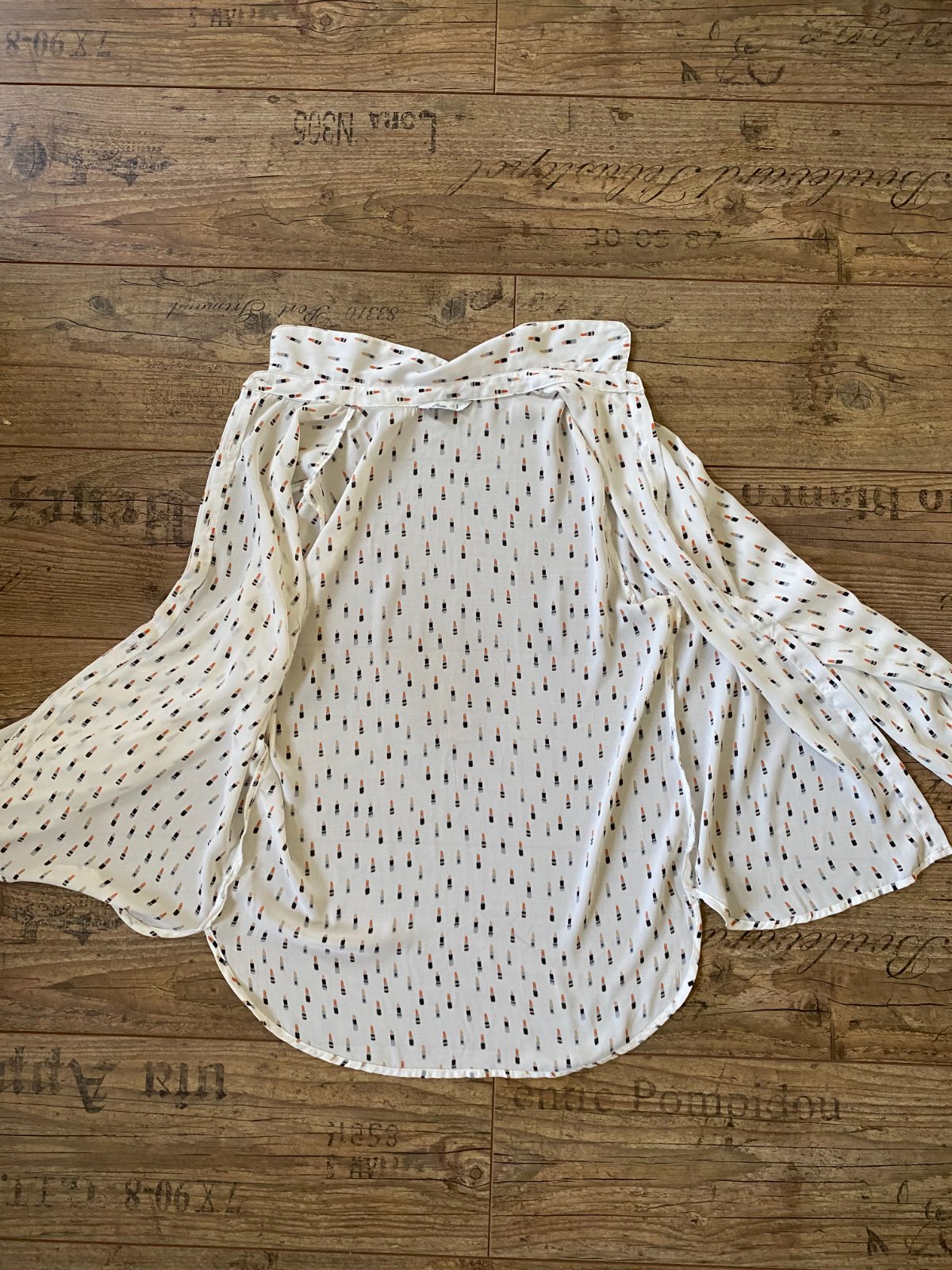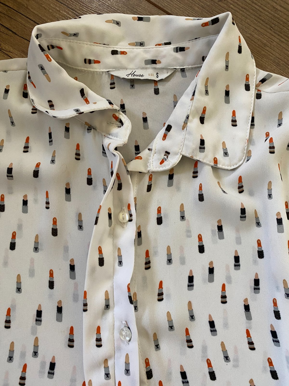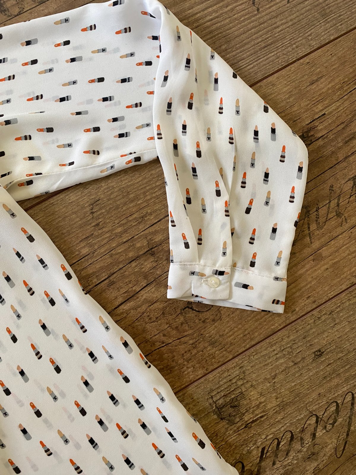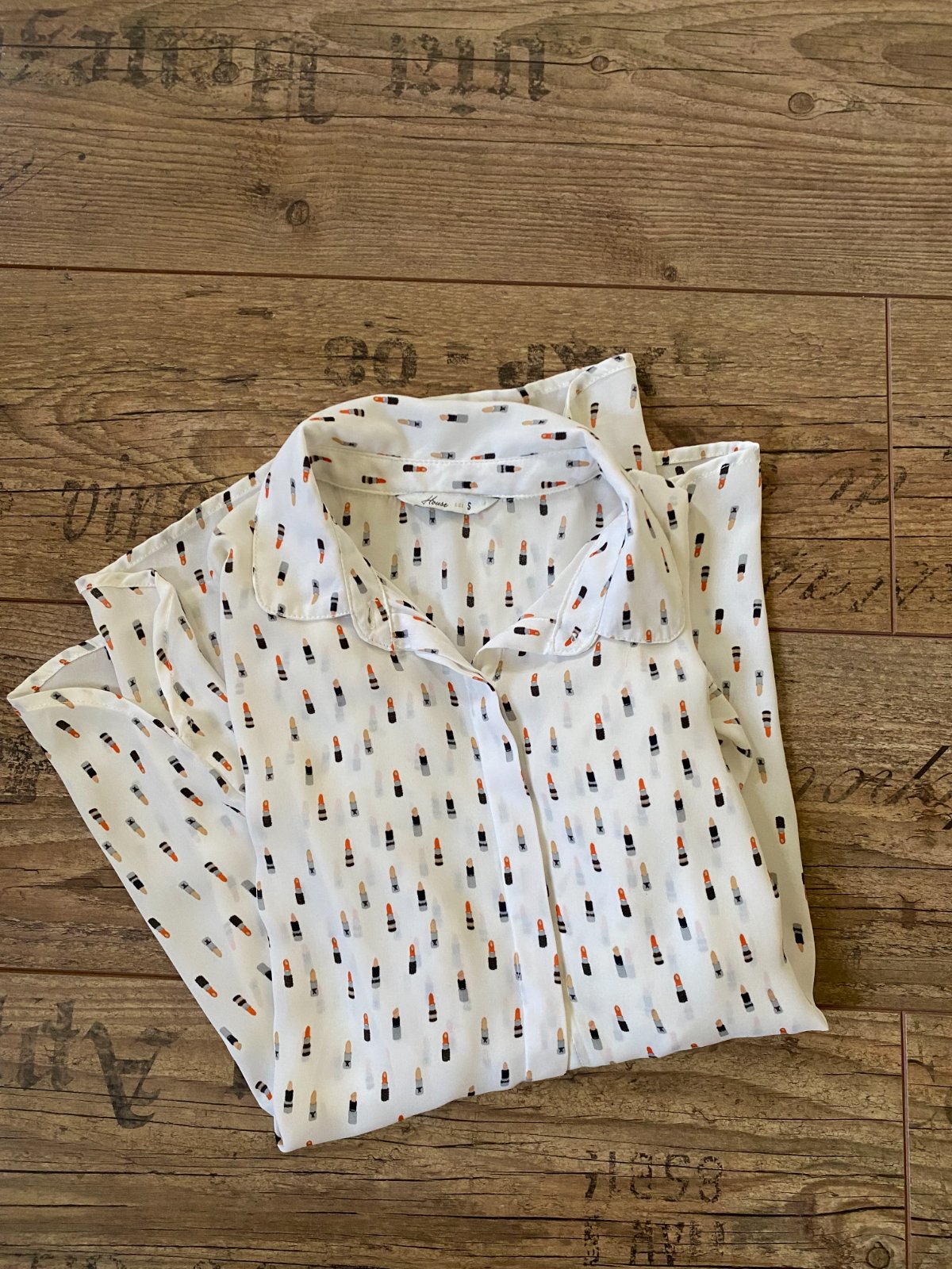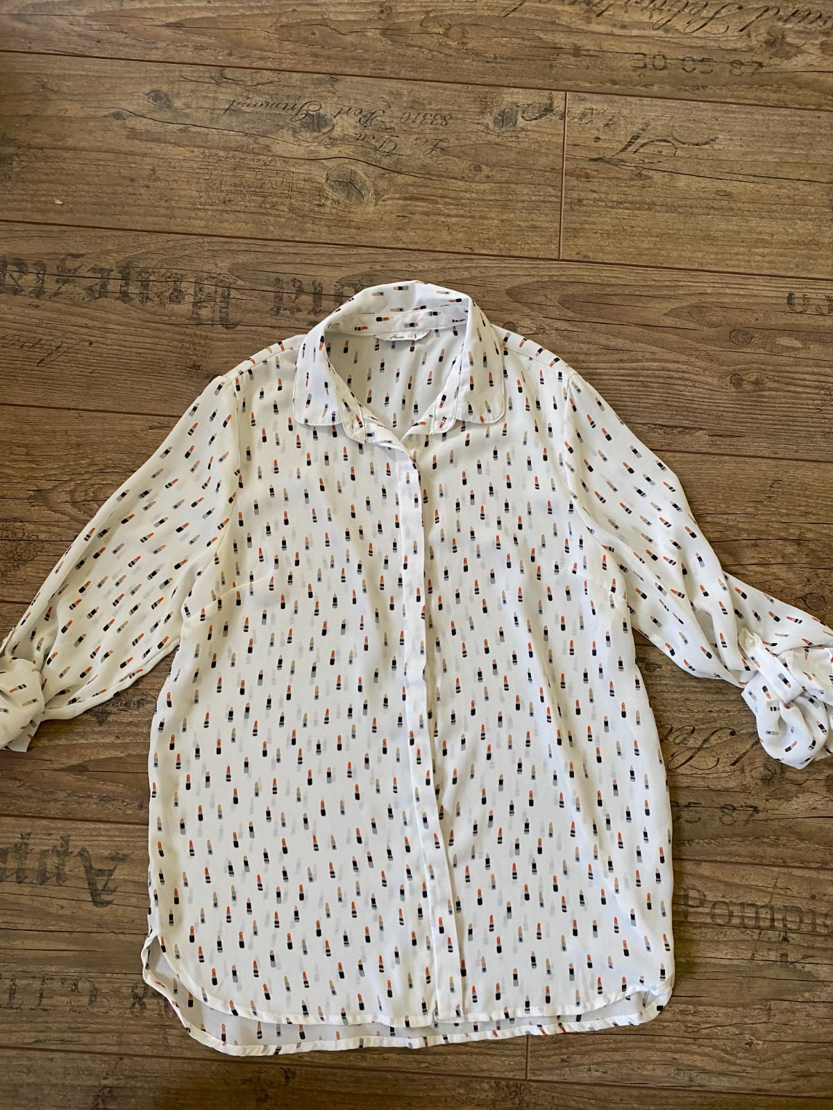 Nepamätám si, že by som ju mala niekedy oblečenú, ale bola praná. Stav je krásny. Nie je elastická. Veľkosť S. Má nastaviteľné rukávy a gombíky sú kryté. Štítok s materiálom je odstrihnutý, ale je to taký elegantný chladivý materiál, mierne priesvitný.