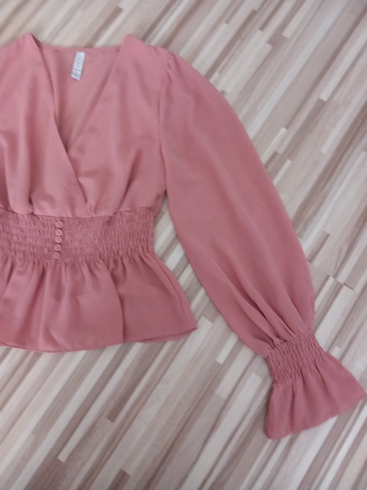 Predám krásnu letnú blúzku v páse a na rukávoch gumička. Vystrih do V prekladaný.Super stav bez poškodenia