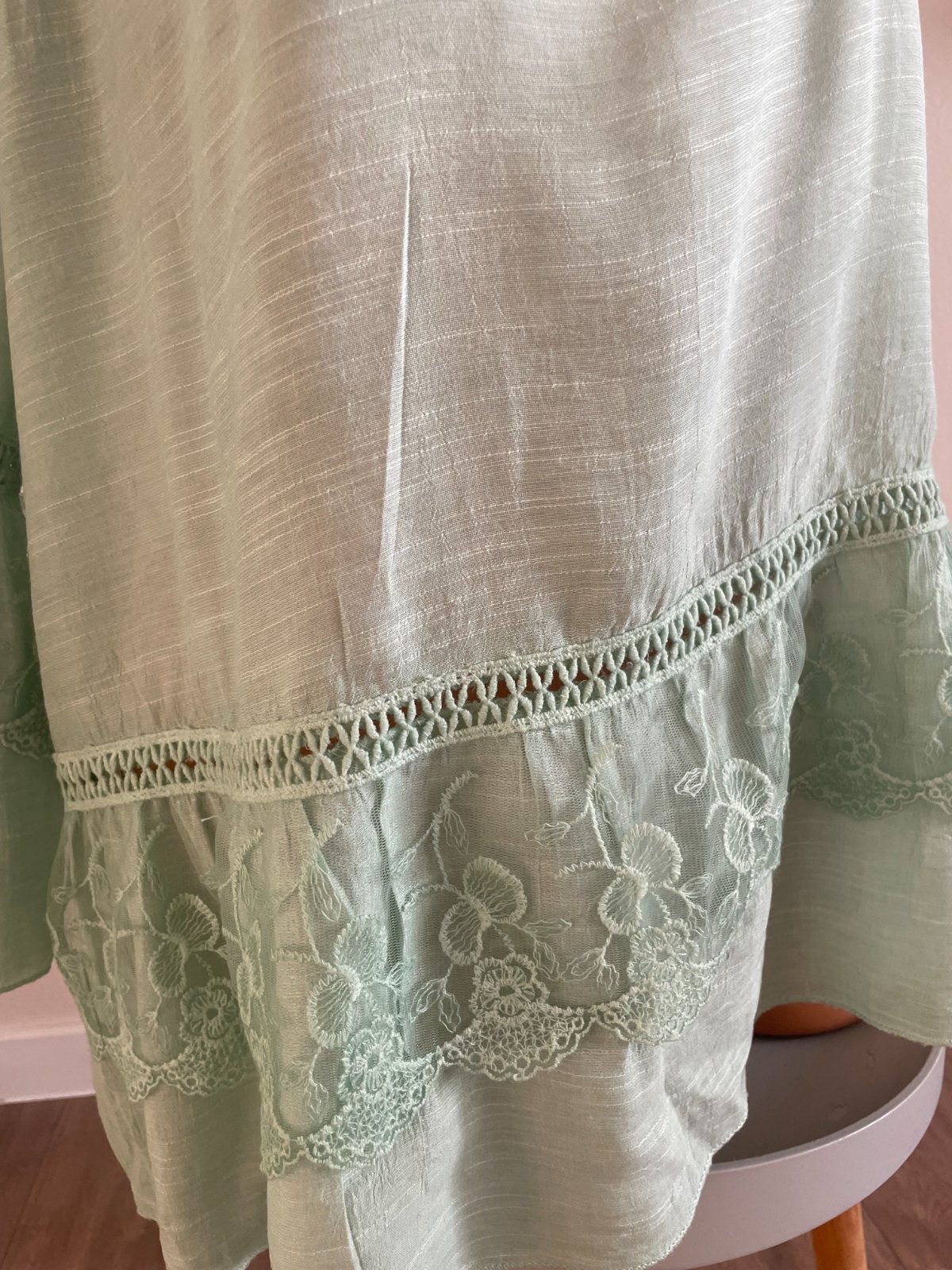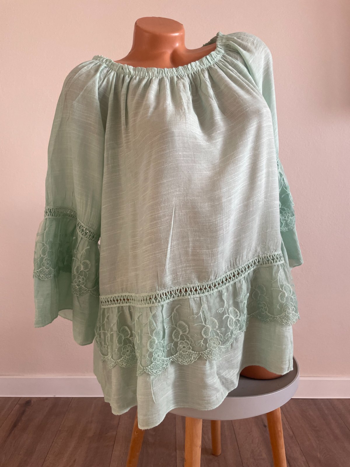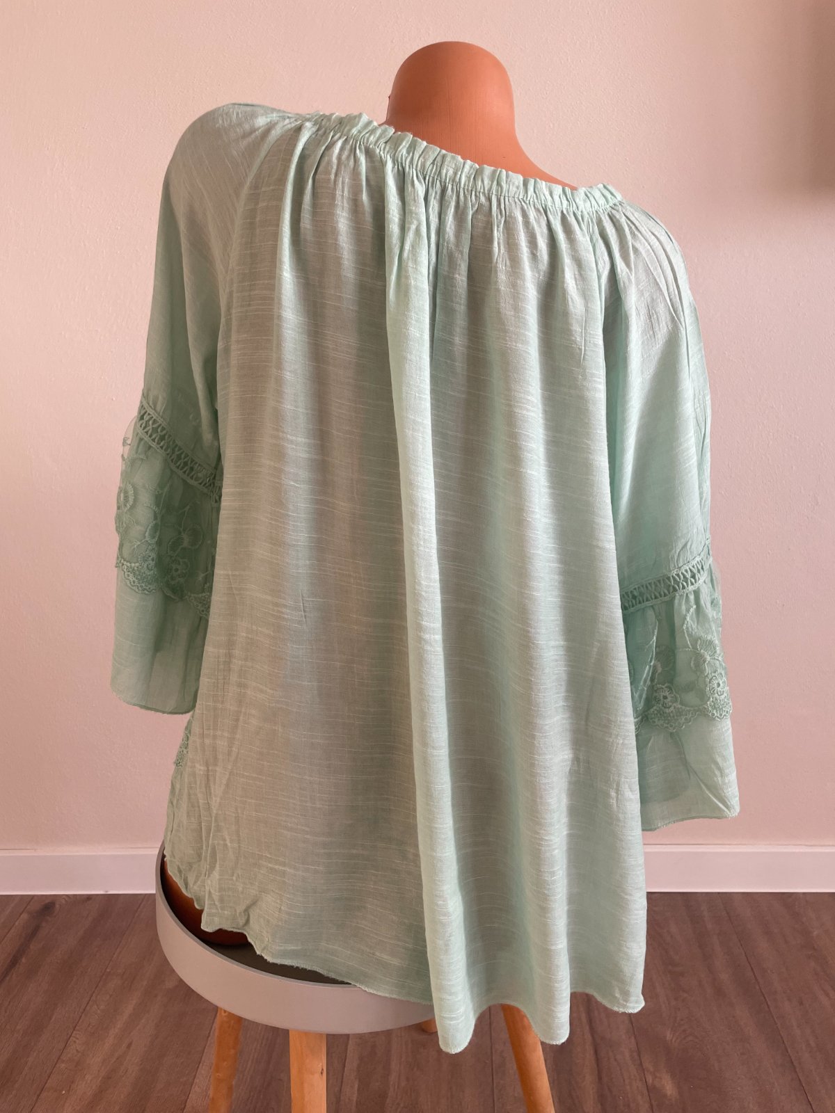 Mentolová zelená blúzka s čipkou, materiál 100% bavlna, veľkosť XXL. TOp stav.