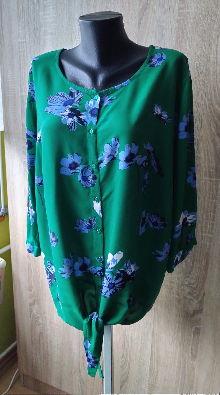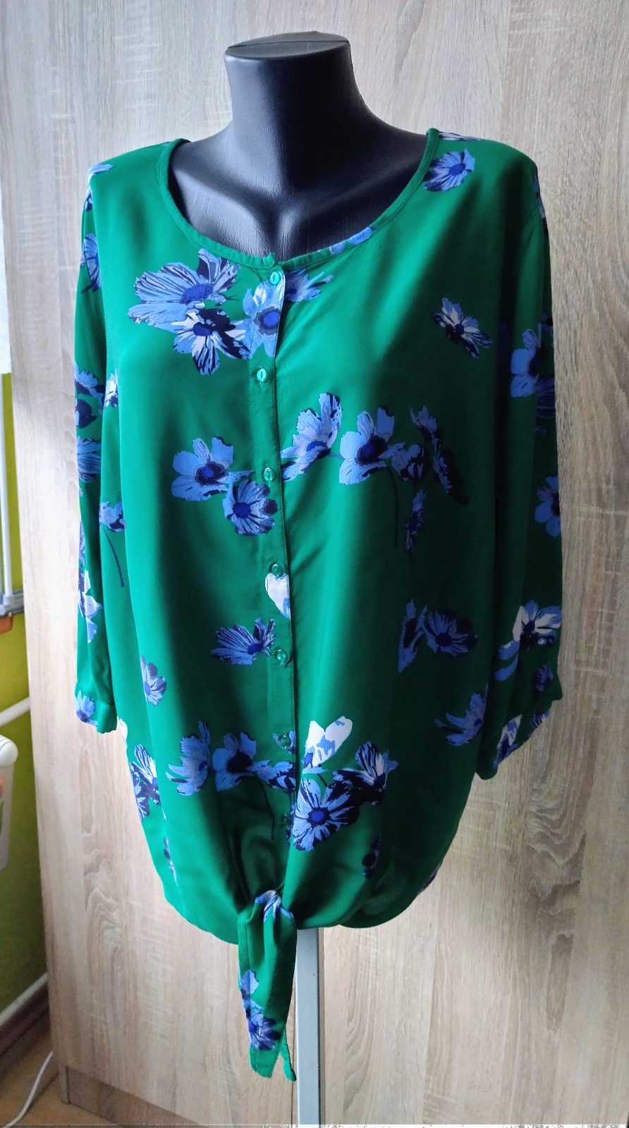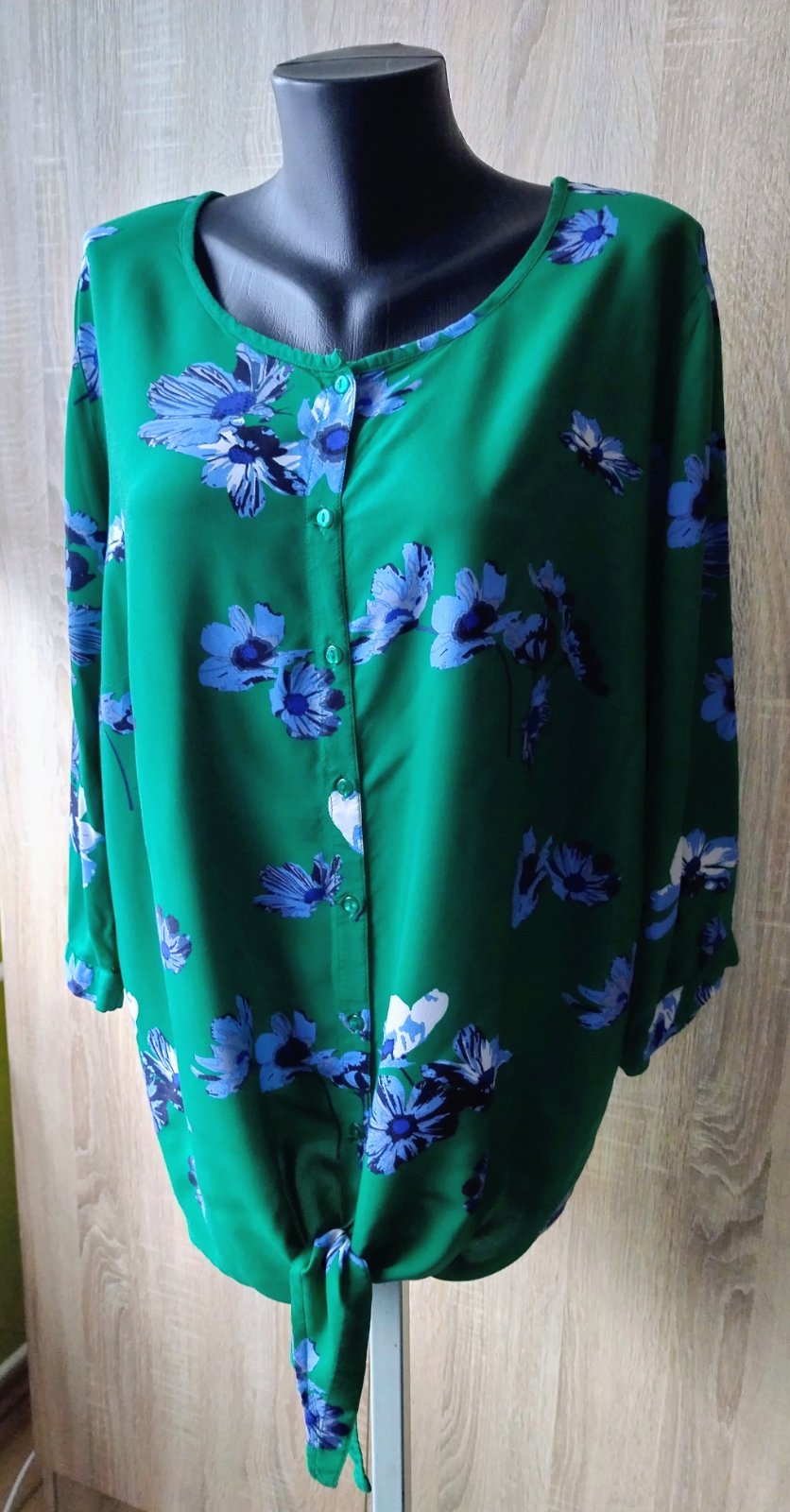 Zelená kvetovaná blúzka, veľkosť 50, značka Bonprix, viazanie naspodu, štýlový strih, ako nová.