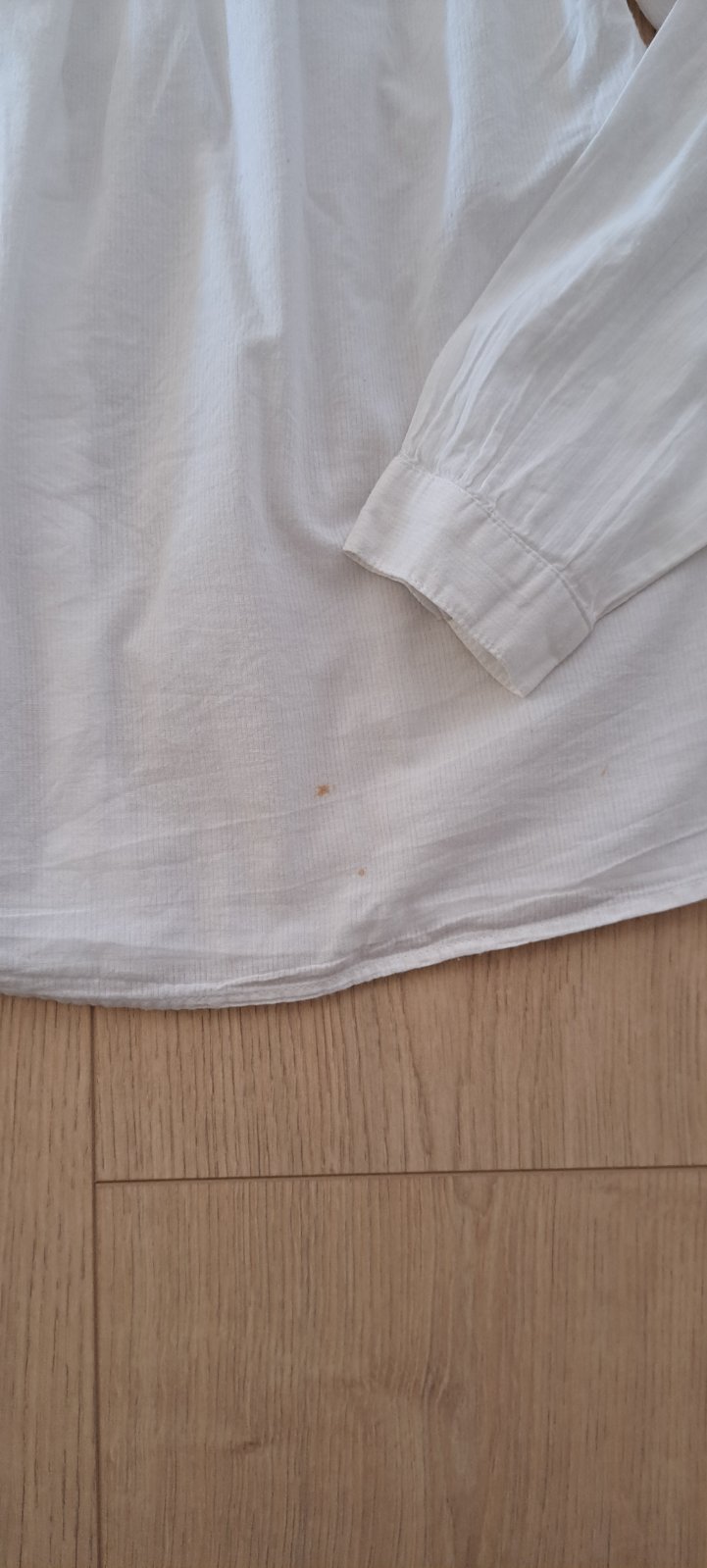 Ľahká biela blúzka, bez poškodenia, len vzadu na spodku sú 2 fliačky( viď foto).