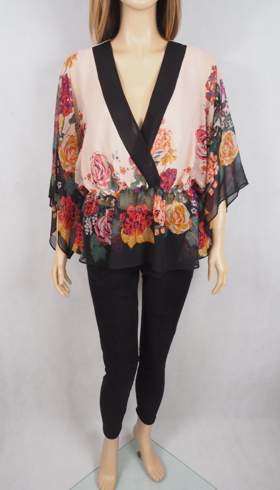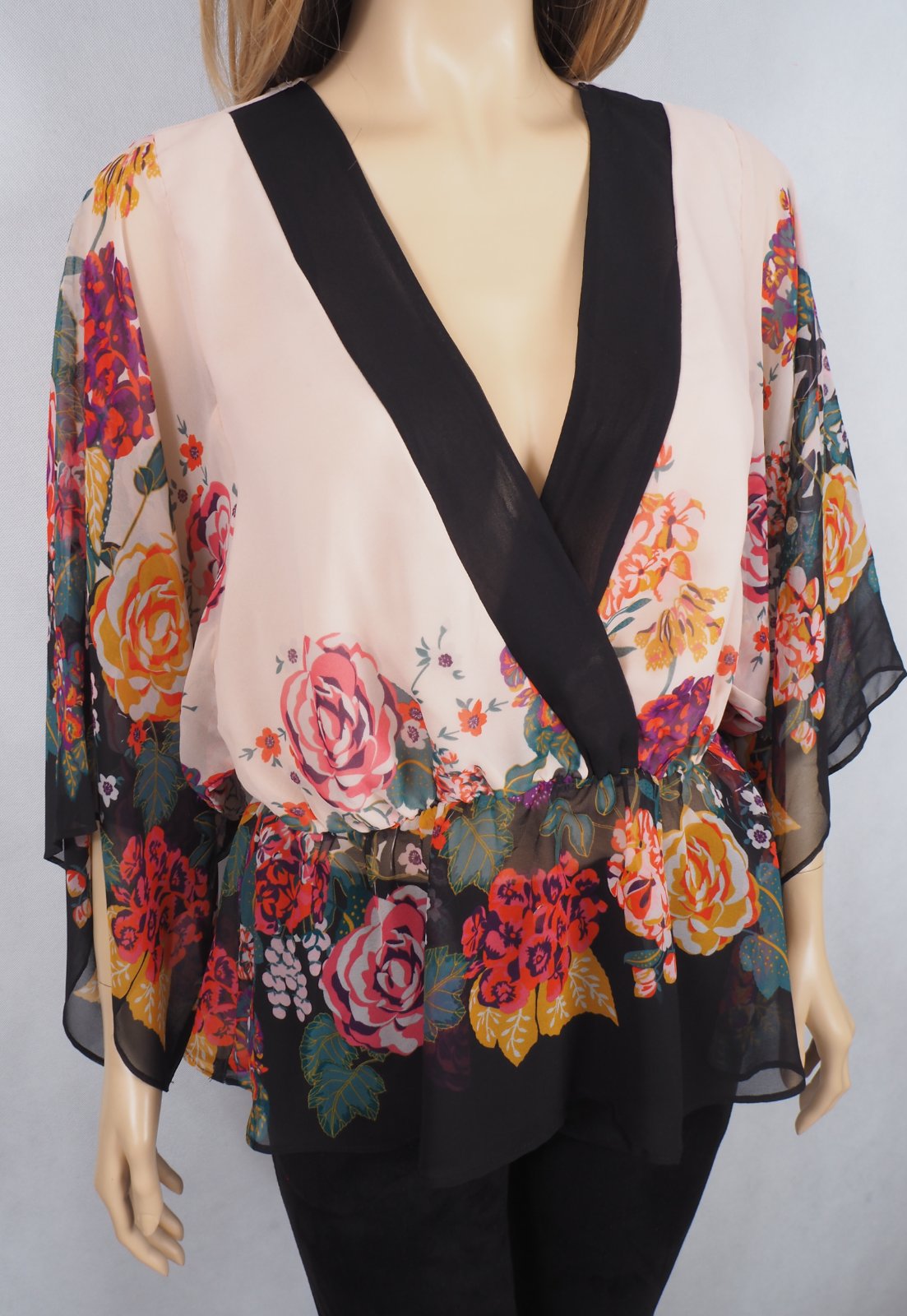 Kvalitná vzdušná blúzka, prekrížený výstrih, široké padavé rukávy, v páse gumka, materiál 100% recyklový polyester, super stav.