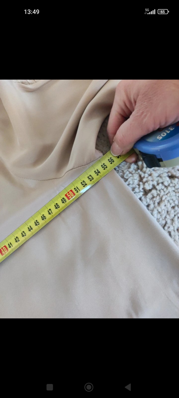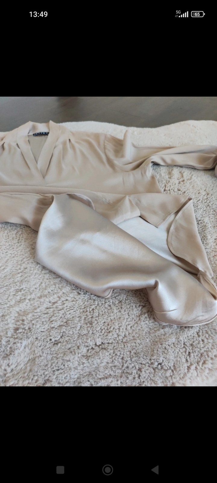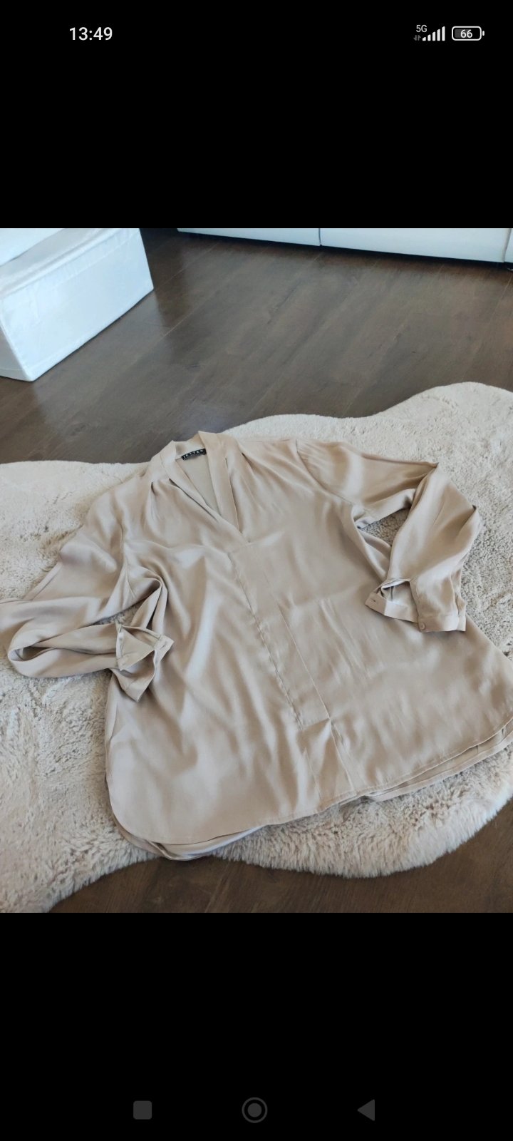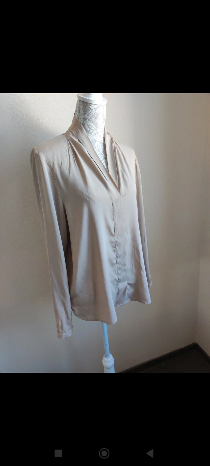 smotanova- kremova bluzka.. velmi pekne tvaruje postavu.. zapinanie z boku na zips.. v rukavoch gumicka sirka pod pazuchami 52 cm x 2, ale je poddajna pas cca 47cm x 2 dlzka cca 62cm