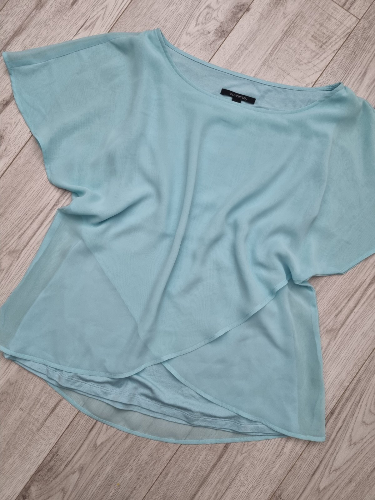 ľahká a elegantná dámska blúzka v tyrkysovej farbe s asymetrickým lemom v spodnej časti