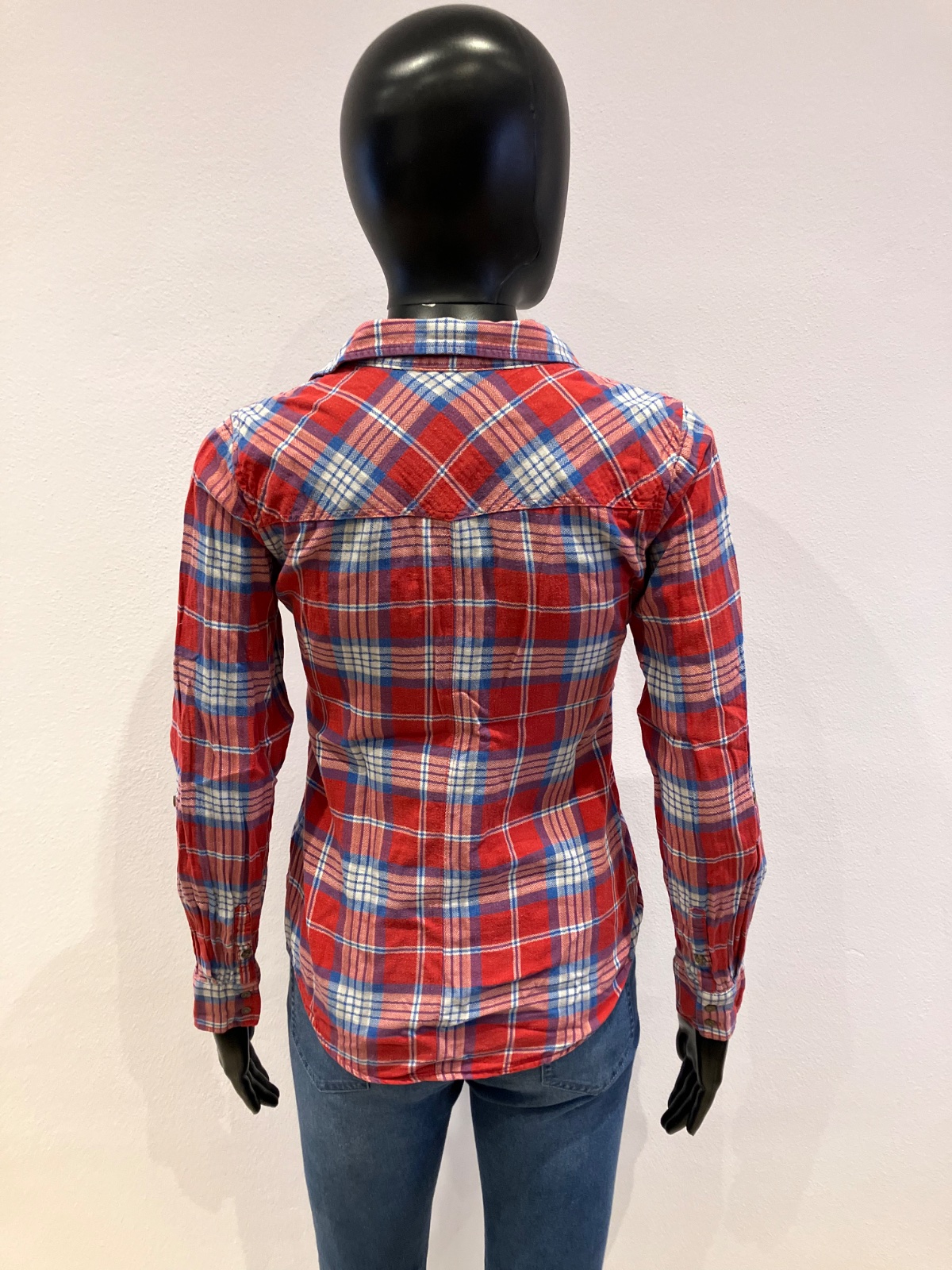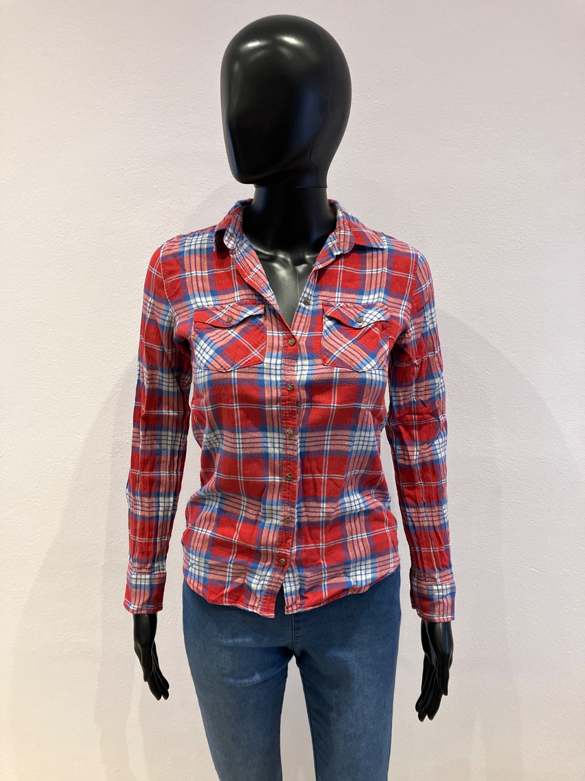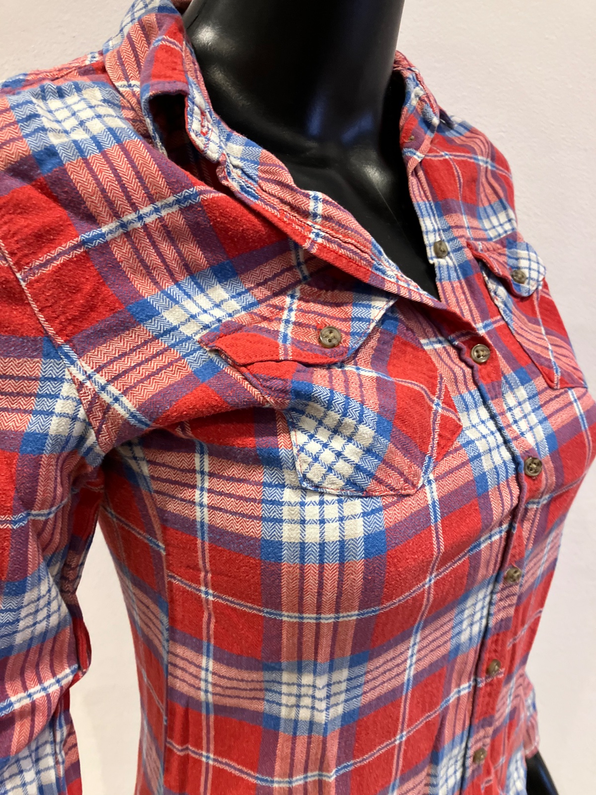 Dámska flanelová károvaná košeľa s dlhým rukávom, zapínanie na gombíky, dve predné vrecká, málo elastická, materiál 100%bavlna.