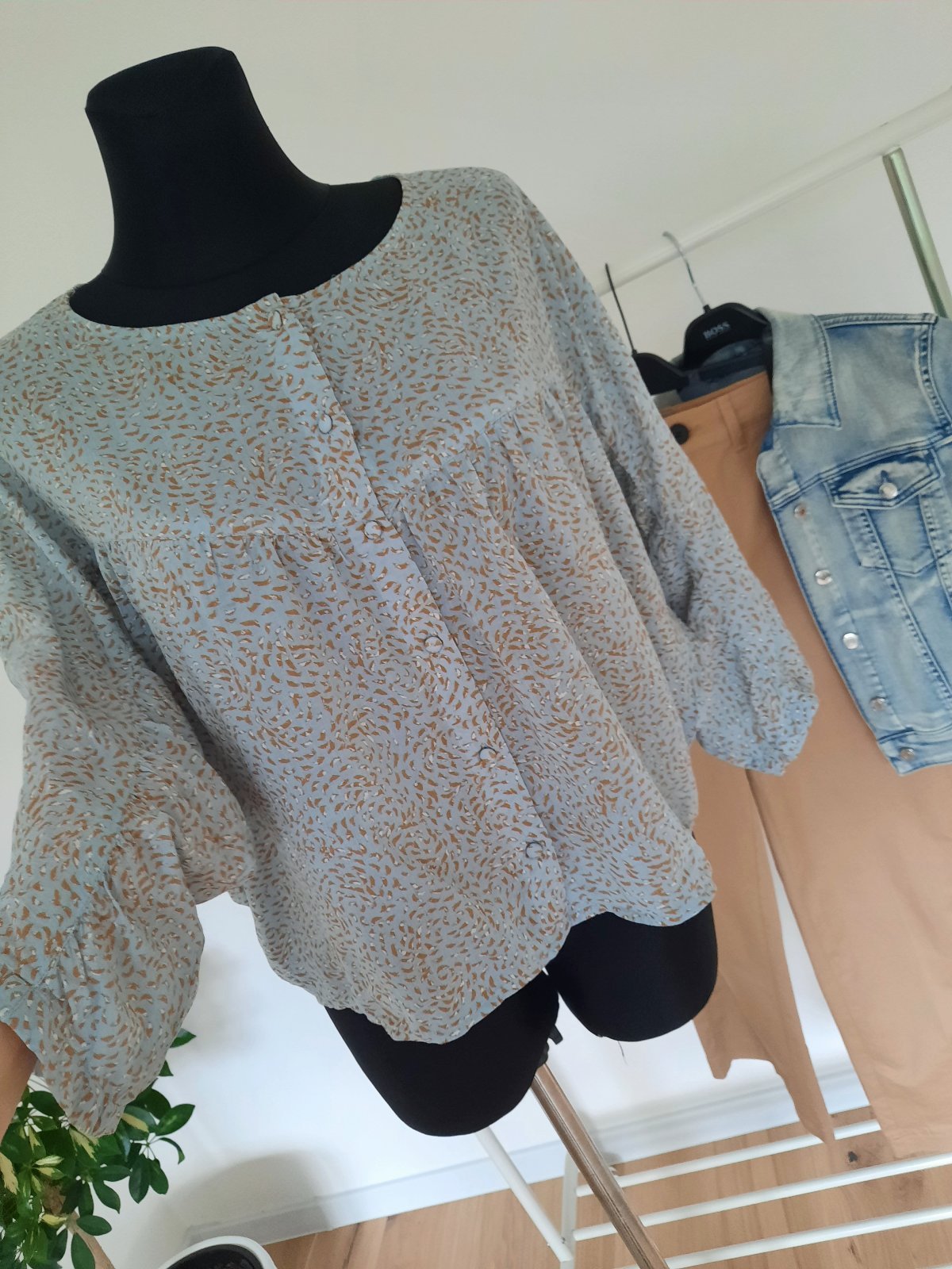 LINDEX oversize letna halenka, volny strih s netopierim rukavom po dlzke riasenie, 100%viskoza/prirodny material, lahucka, vzdusna na horuce dni, obalovane gombiky, vel M dlzka 55cm