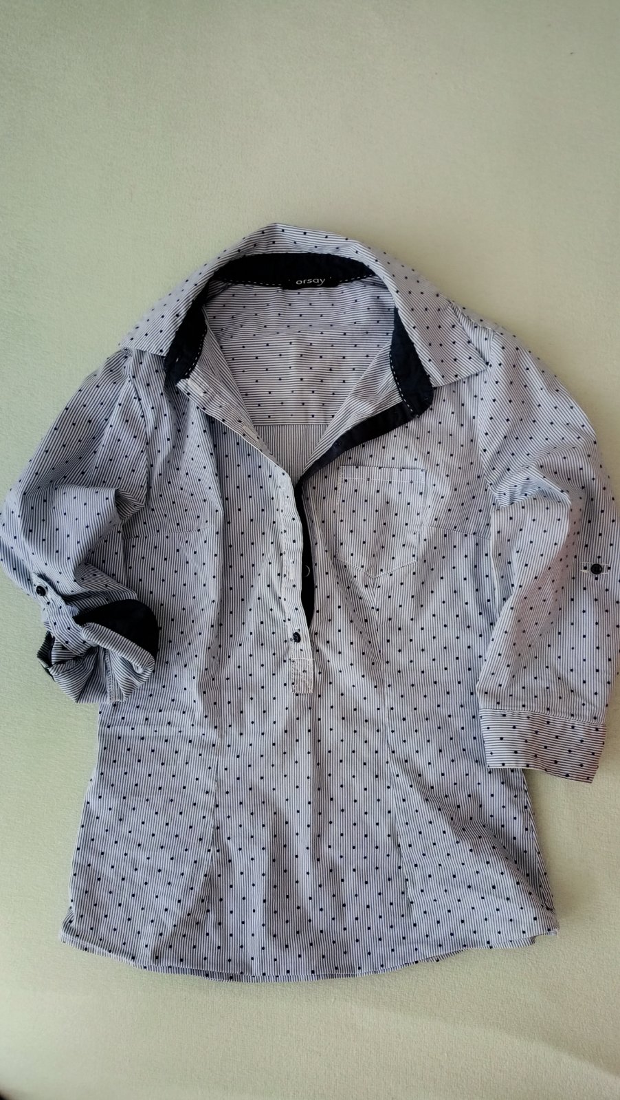 Predám košeľu Orsay veľkosť XS, vo výbornom stave. Ma 3/4 rukávy s možnosťou vykásania a zapnutia. Cena 7 eur