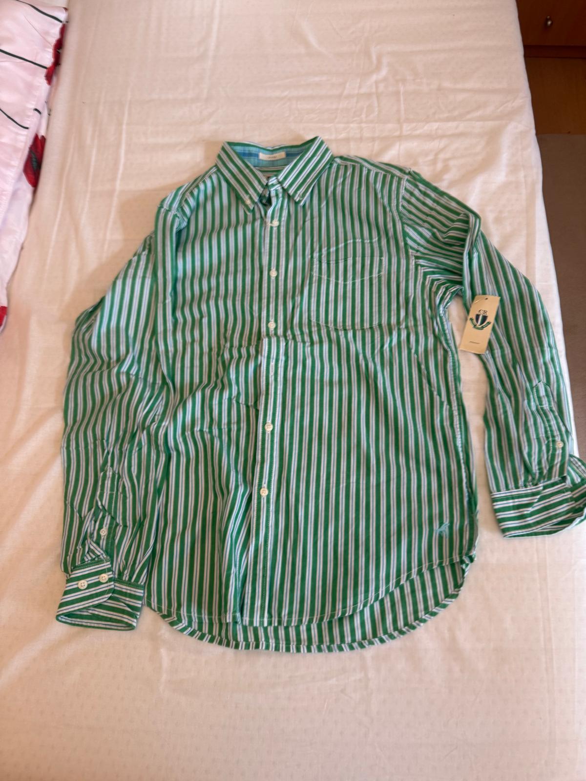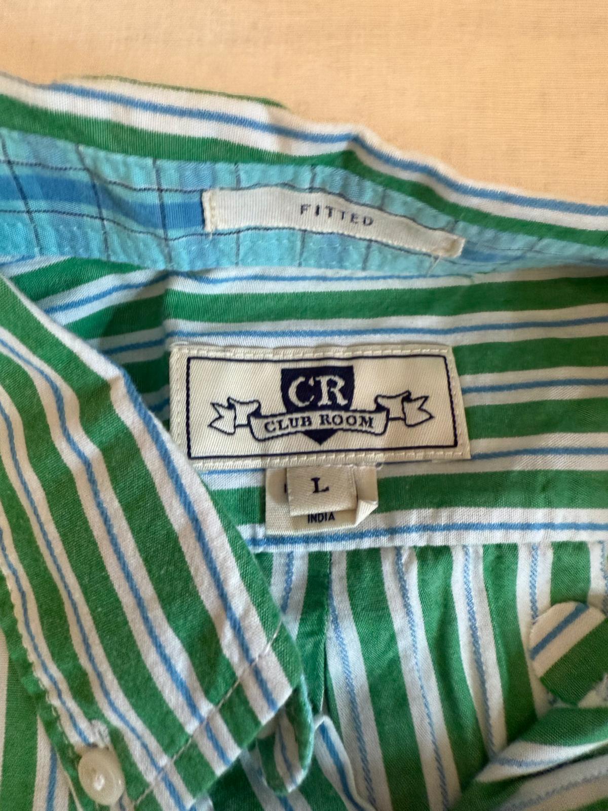 Predám pánsku košeľu Etro vel. L, šírka 58 cm, dĺžka 75 cm v najdlhšej zadnej časti , rukáv od pleca 63 cm ,od krku 79 cm, strihaná do oblúka, zeleno-biely pásik , top stav + poštovné. Nie Výmena !...