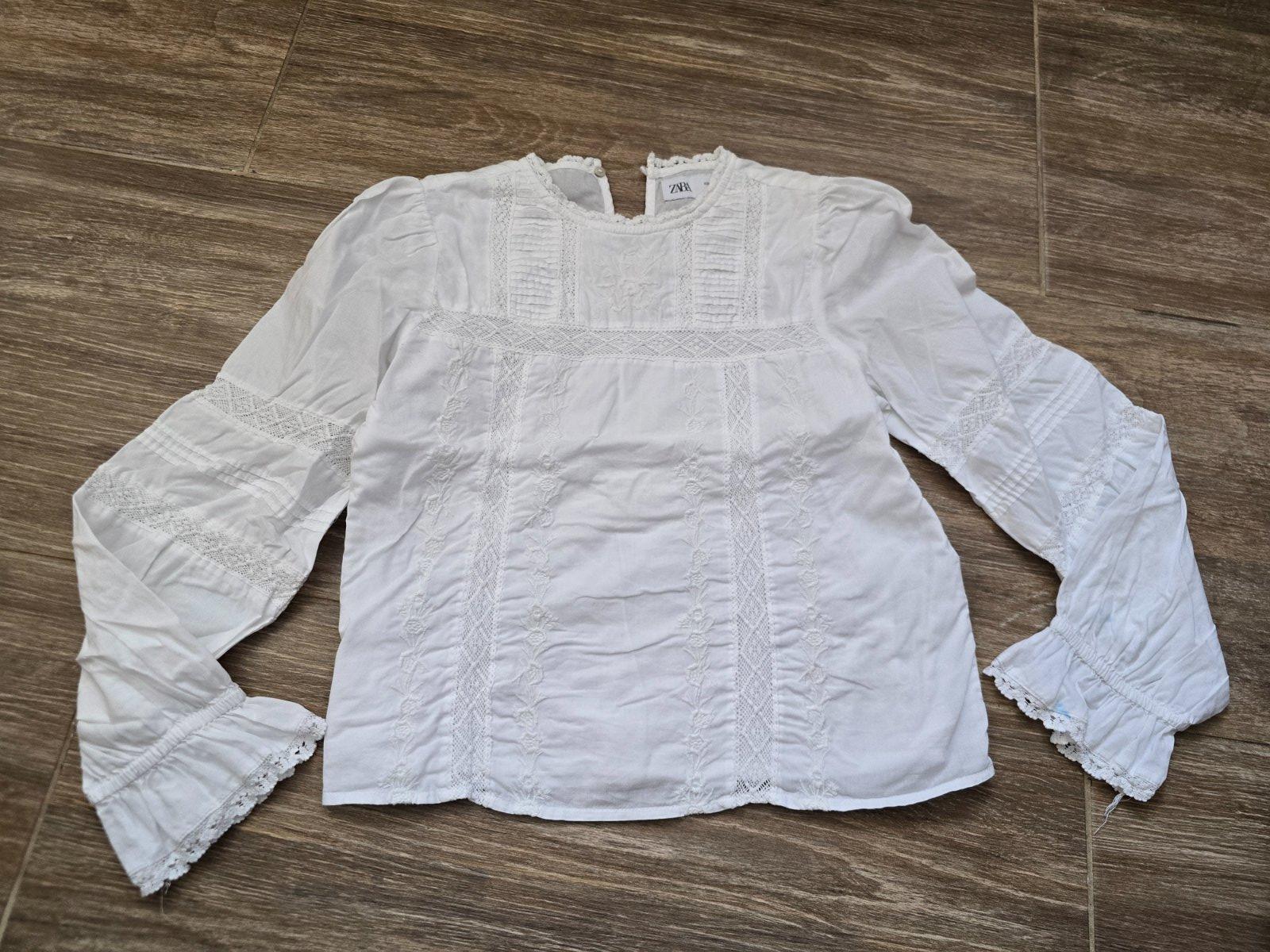 Dievčenská biela blúzka s ažúrovaním zn. Zara. S volánikom vpredu. Vo výbornom stave.