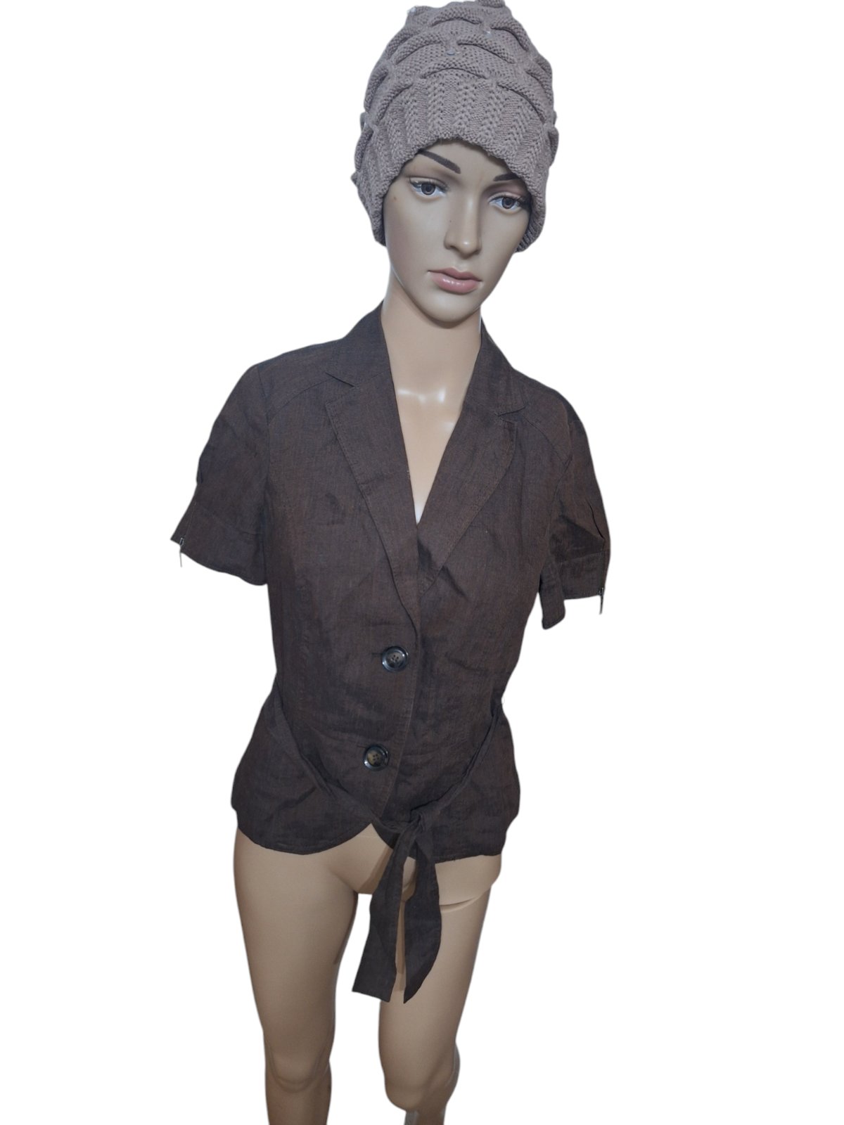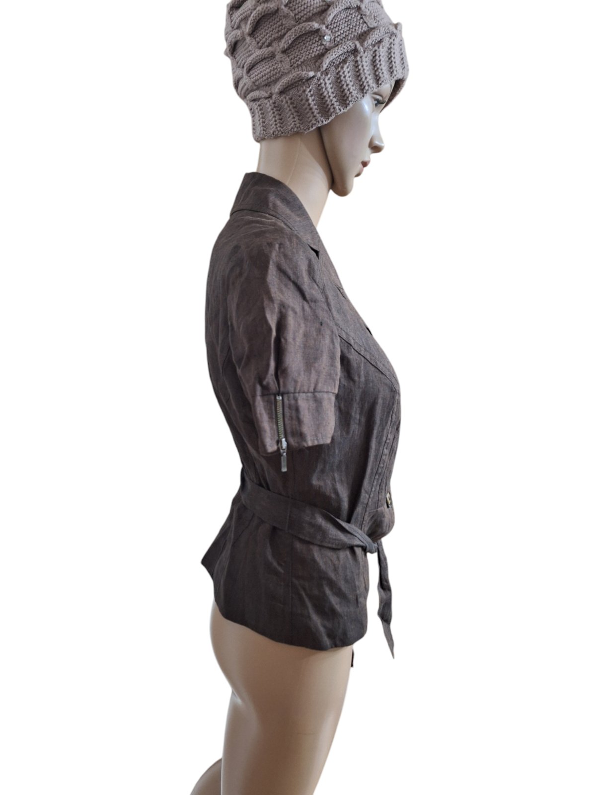 Dámska ľanová blúzka s opaskom značky Comma. Dĺžka je 50cm,obvod hrudníka je 84cm a obvod pása je 85cm. kód 1228
