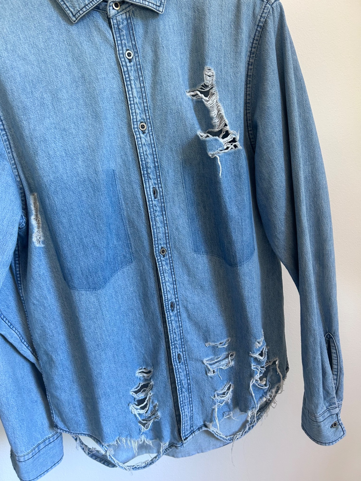 Pánska riflová košeľa, ale pekne ukaze aj na žene ako oversize