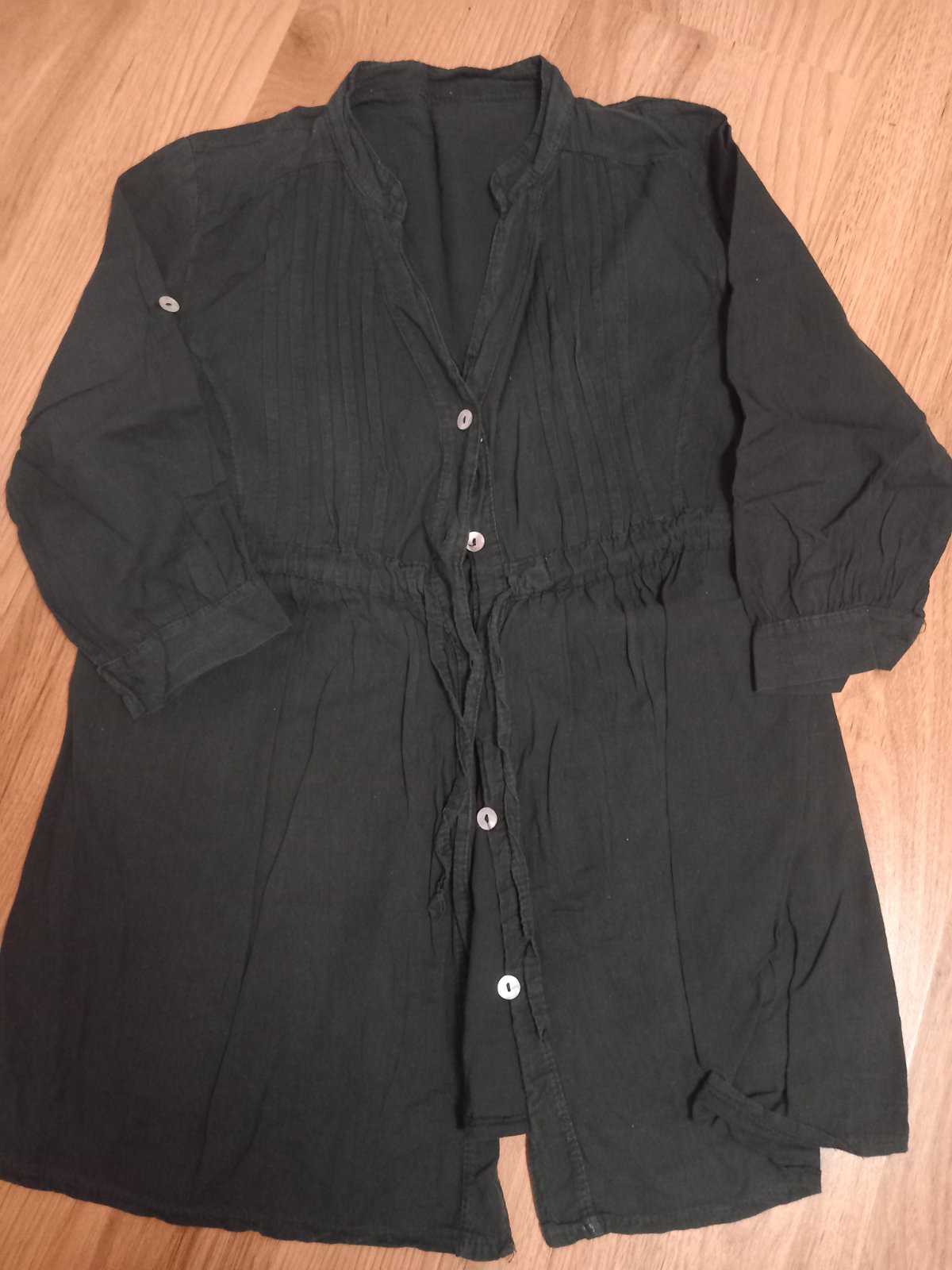 Predlzena cierna kosela, bluzka s 3/4 rukavmi. Rukavy su na predlakti zohnute (da sa aj vystriet). Nosena zachovala. Dlzka 75 cm. Sirka 45 cm