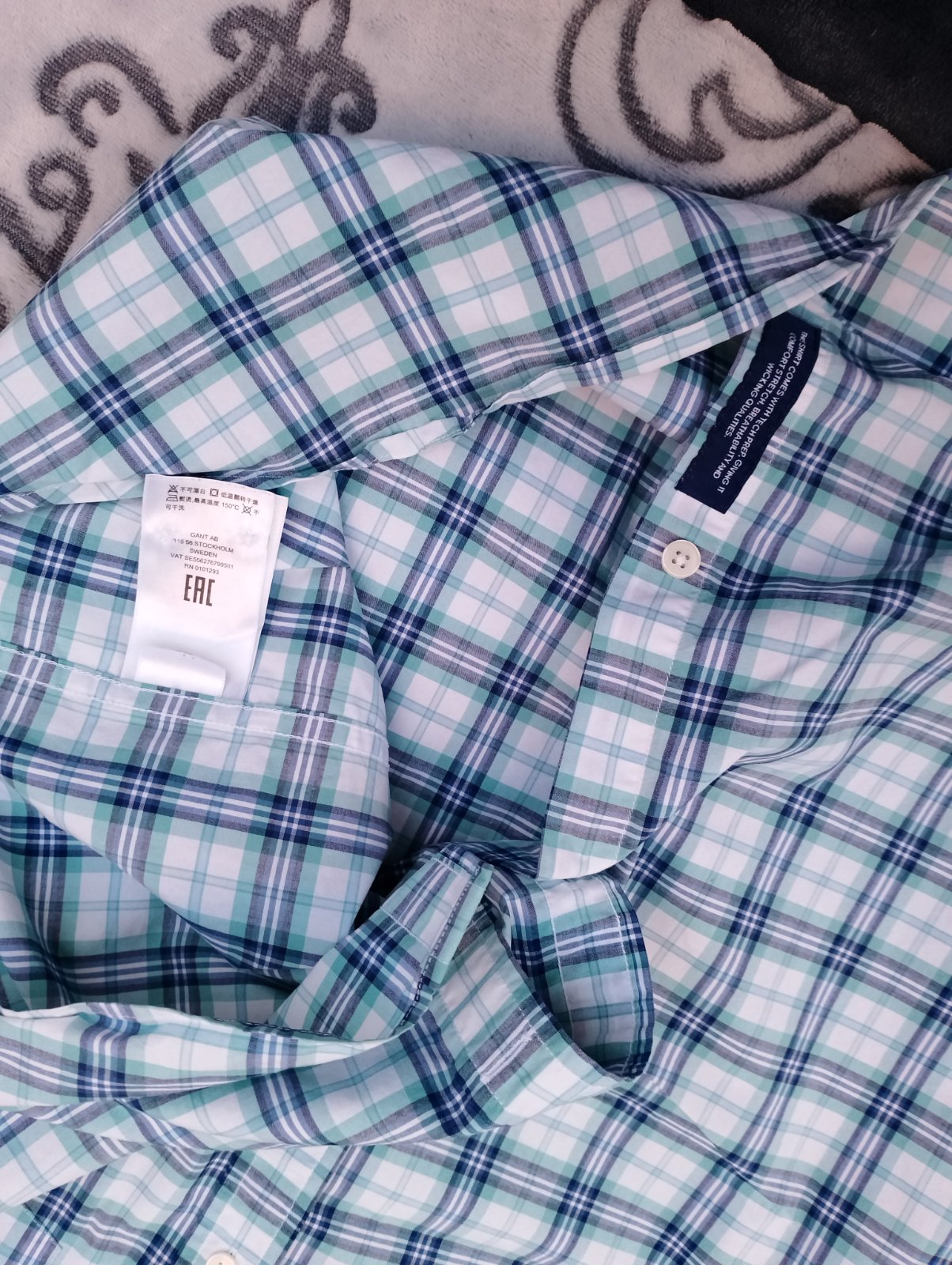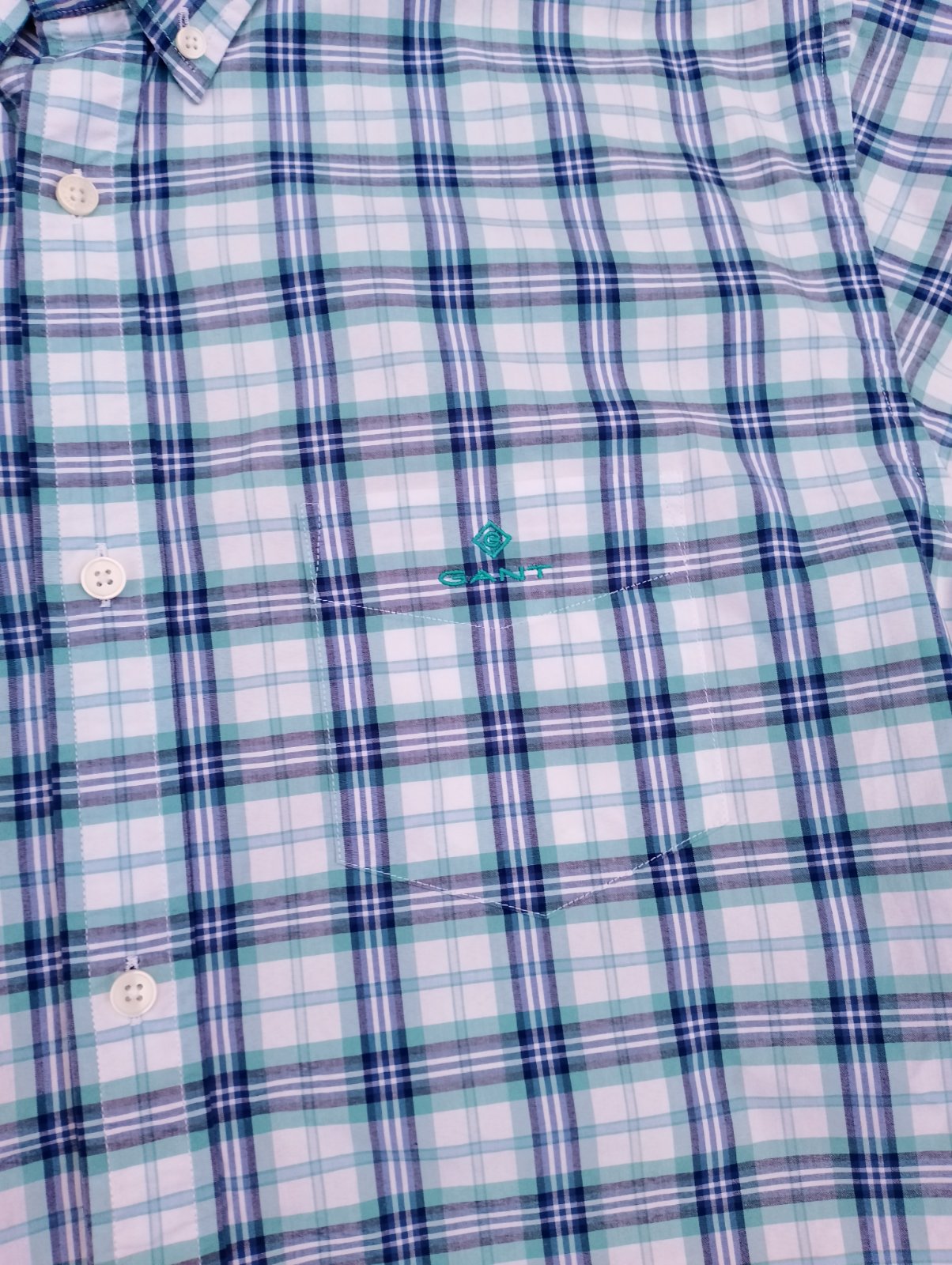 Veľkosť 43/44 17 1/2, krásna karovana pánska košeľa značky Gant, príjemný bavlnený materiál, decentné logo Gant.