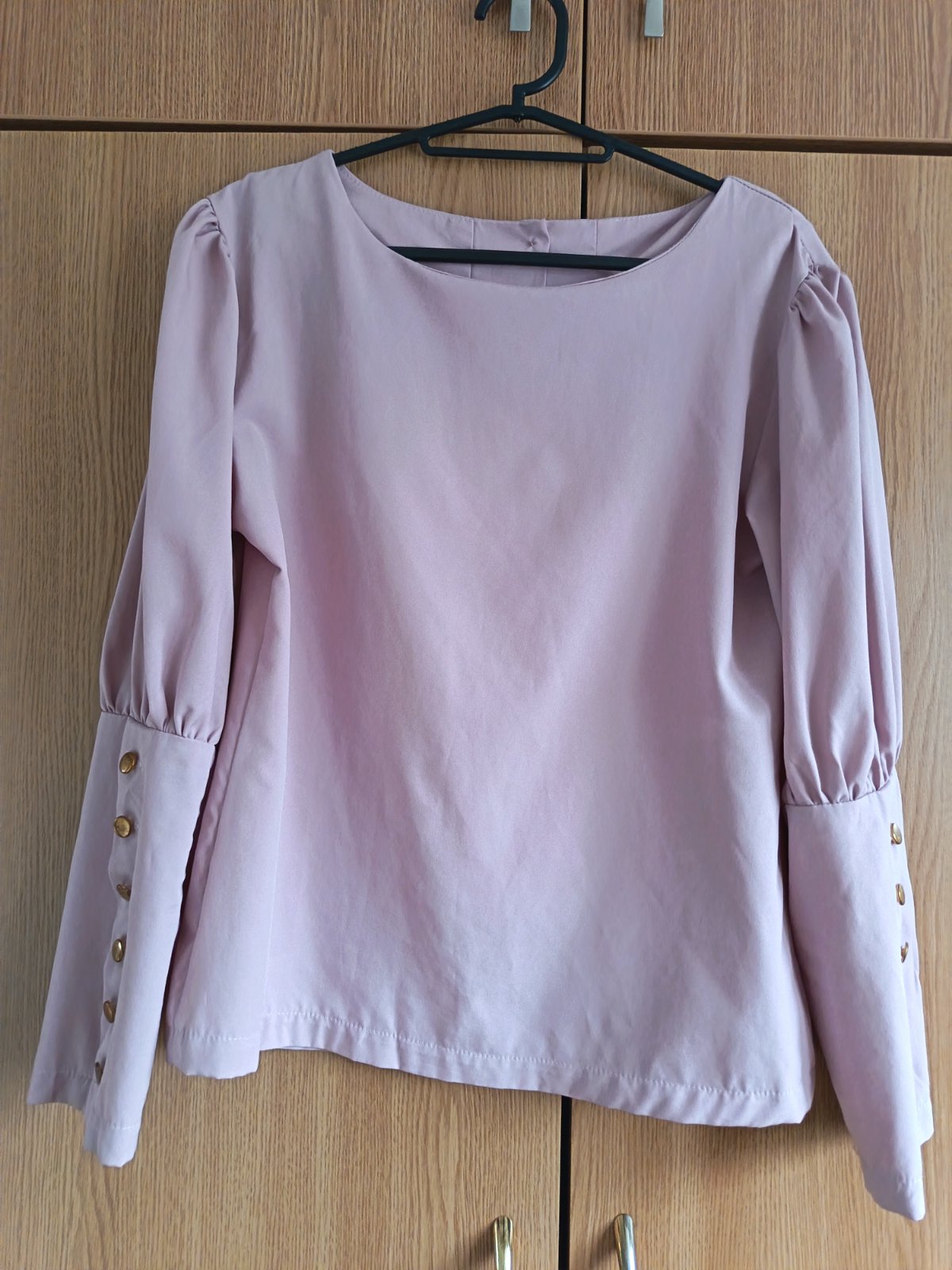 Na blúzke sú prišité zlaté gombíky, ktoré ju veľmi pekne ozdobujú. 100% polyester. Cez prsia 90 cm a cez brucho 88 cm.