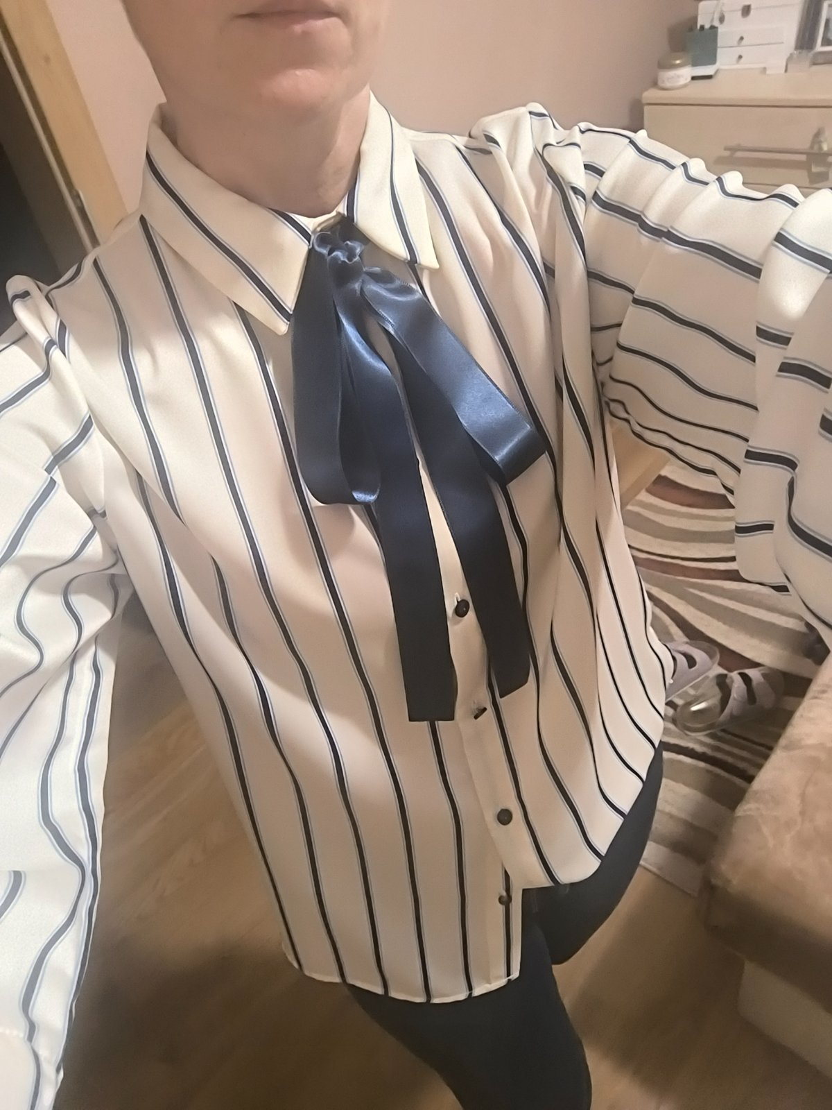 Úplne nová košeľa, saténová, ešte s visačkou. Nie je tenká , nepresvitá. Rukávy krásne široké, veľmi sa mi to na nej páči. Len ja som nízka...a nevyzerá to dobre. Ono tie rukávy boli na modelke 3/4. Takže môžu byť aj tak alebo ako dlhé.