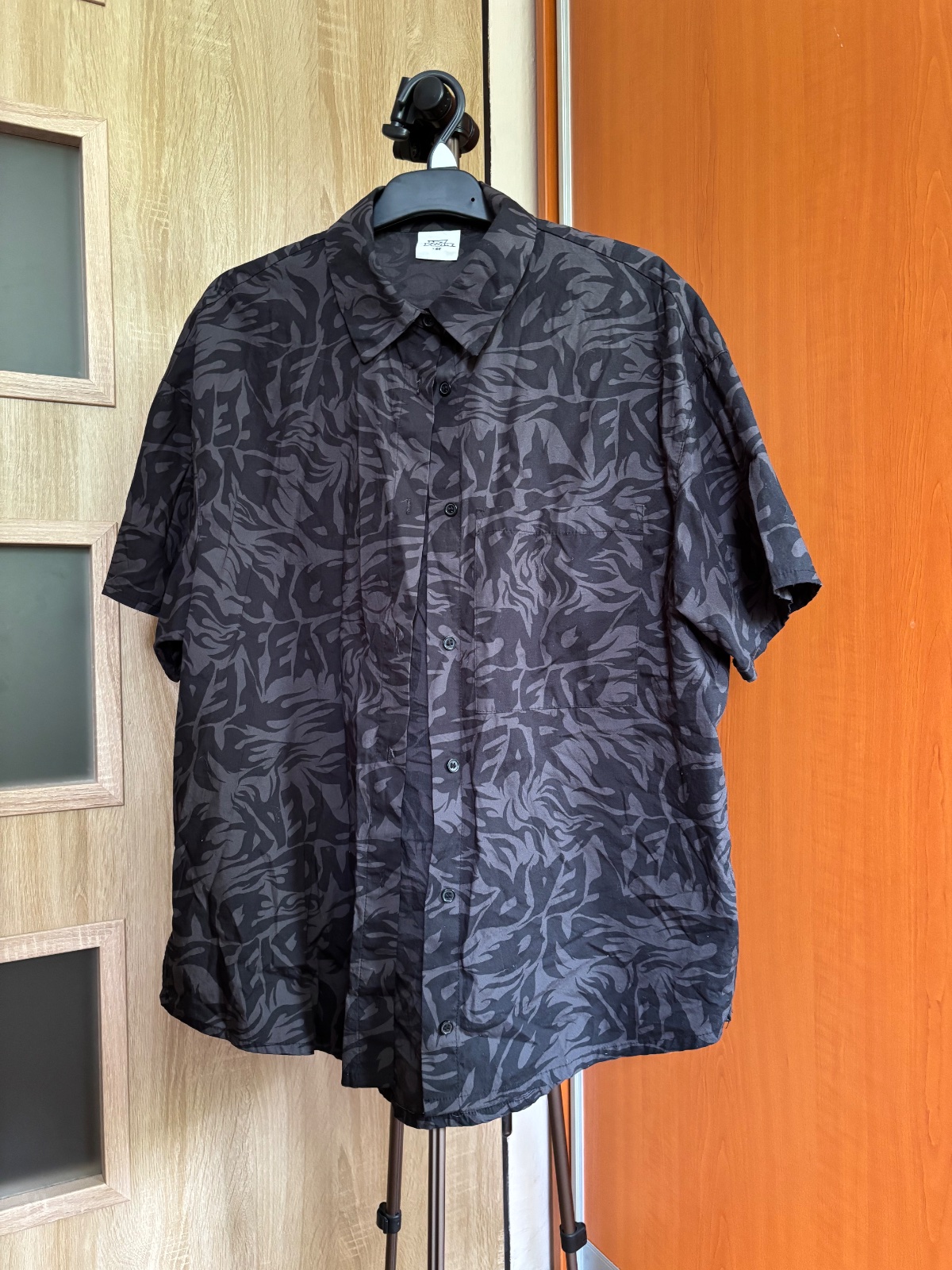 Čierna košeľa so vzorom značky No fear. Kupovaná v H&M. Výborný stav. Veľmi málo nosená.