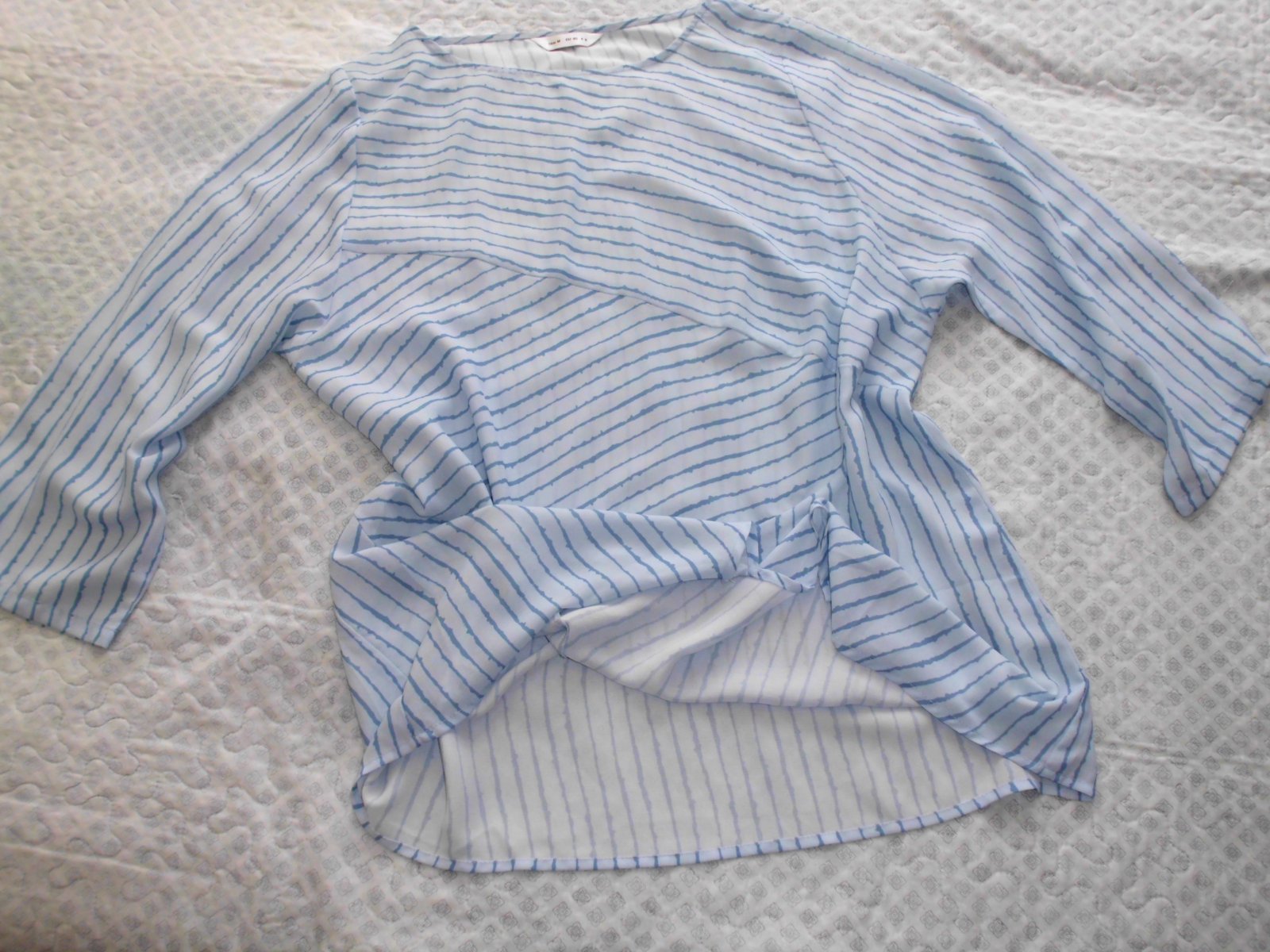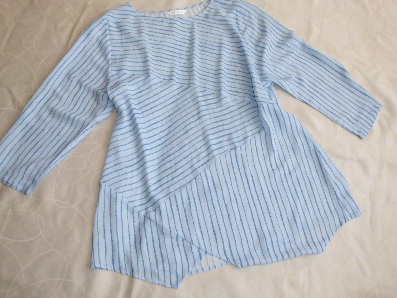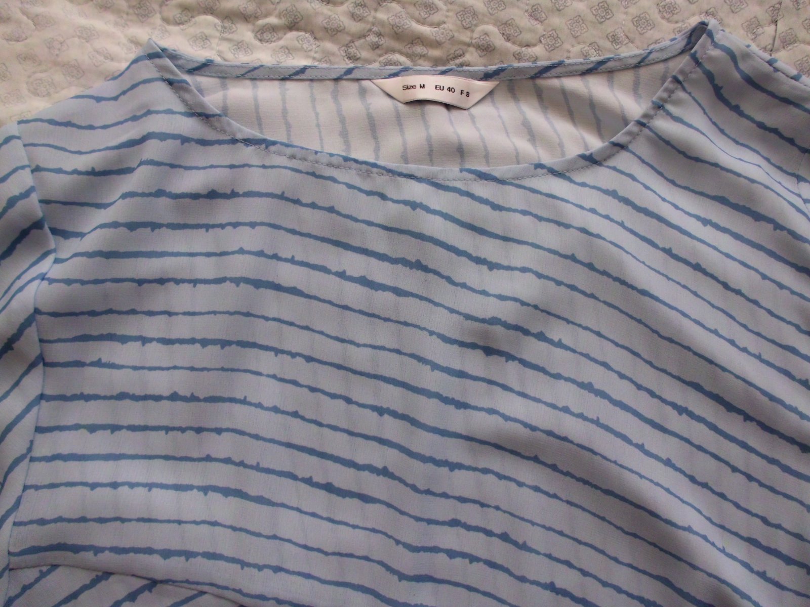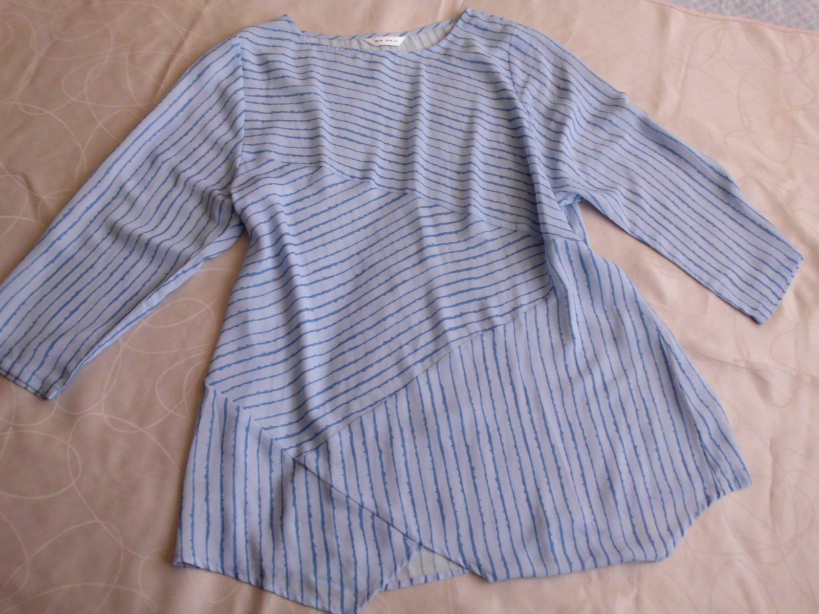 Predám dámsku oversize tuniku blúzku vel. M-L-XL . šírka 56 cm, zadná dĺžka 72 cm, rukáv 50 cm od pleca, ľahký tenší materiál , bledomodrá + tmavšie modré pásy farba , 2x oblečená, top stav