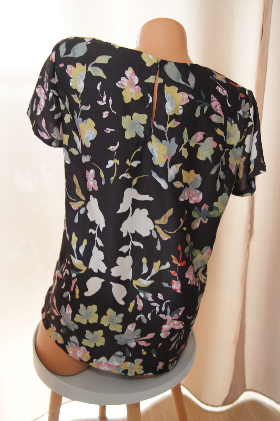 Čierny saténový kvetinový top, veľkosť M/L. Top stav. Nosený. má pár zatiahnutí.