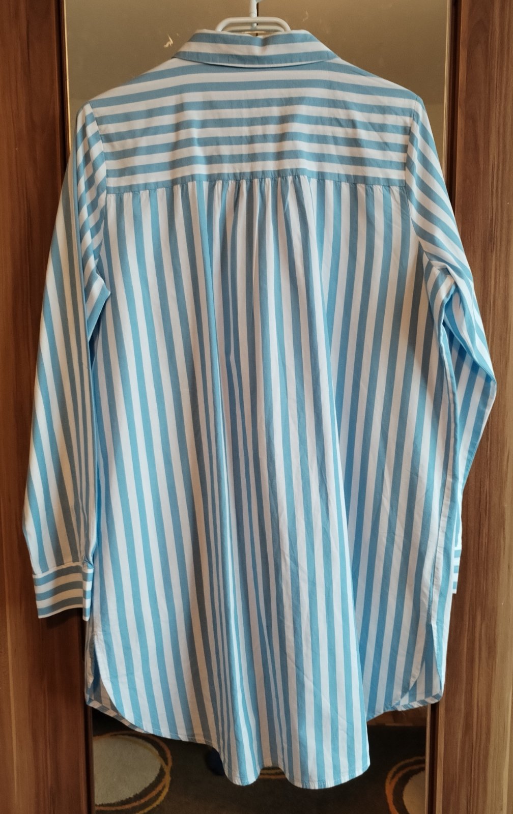 Bavlnena kosela, velmi pekna, u mna nevyuzita, kupena na prilezitost. Rukav sa da vyhrnut.V top stave. Cd 66 cm Š pod pazuchami 48 cm Rukav 56 cm