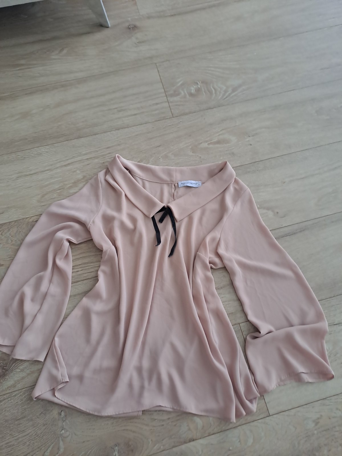Ružová blúza so zlatým opaskom a 3/4-ovým rukávom super stav bez poškodenia, roll up rukáv, Zlatý opasok, šírka 2x50cm, rukáv 52cm, dĺžka 67cm so zlatým opaskom