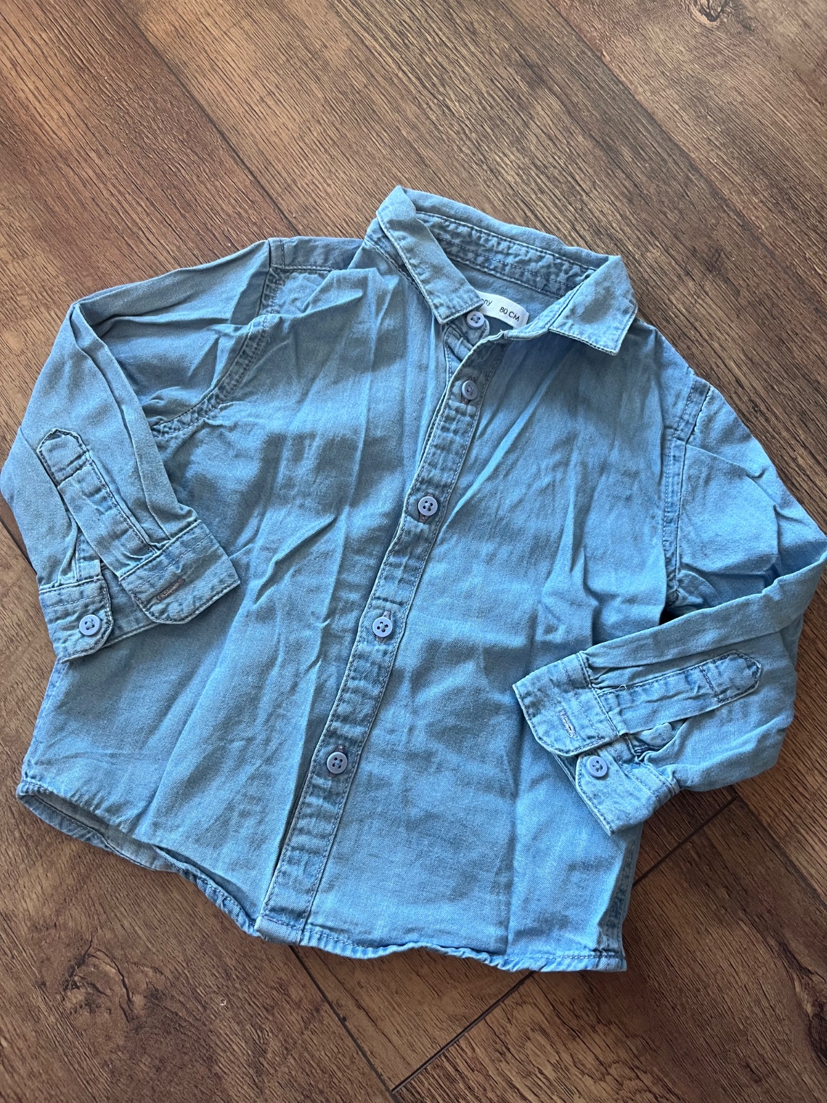 Krasna riflova kosela s nasivkami. Velkost 80, znacka reserved, je trosku batikovana vsetko je od vyroby aj rozstrapkane kraje. Zapinanie na pukacky. Mali sme ju 1 krat a potom sme na nu pozabudli....