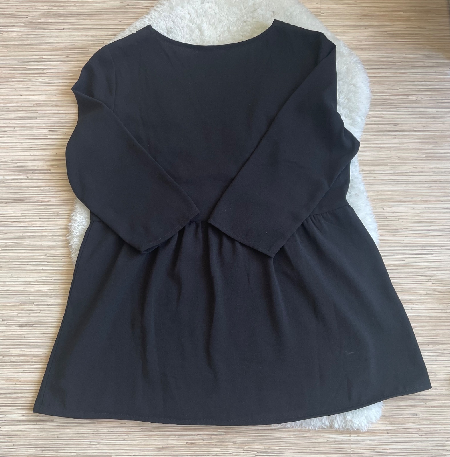 Cierna ackova bluzka s nariasenym detailom v pase, V vystrih, dierkovany detail, volny strih