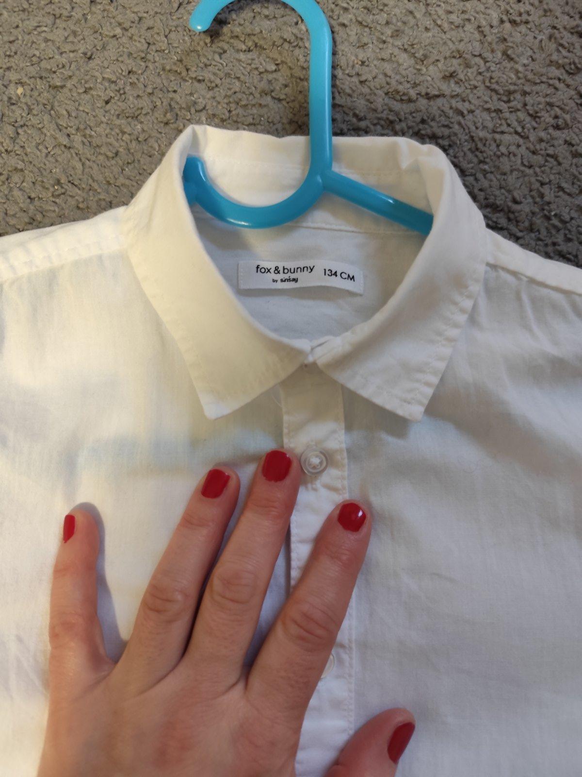Tm.modrá košela s červeným písmenom B, má roll up rukávy. Syn ju mal oblečenú 2x. J vo velmi dobrom stave.