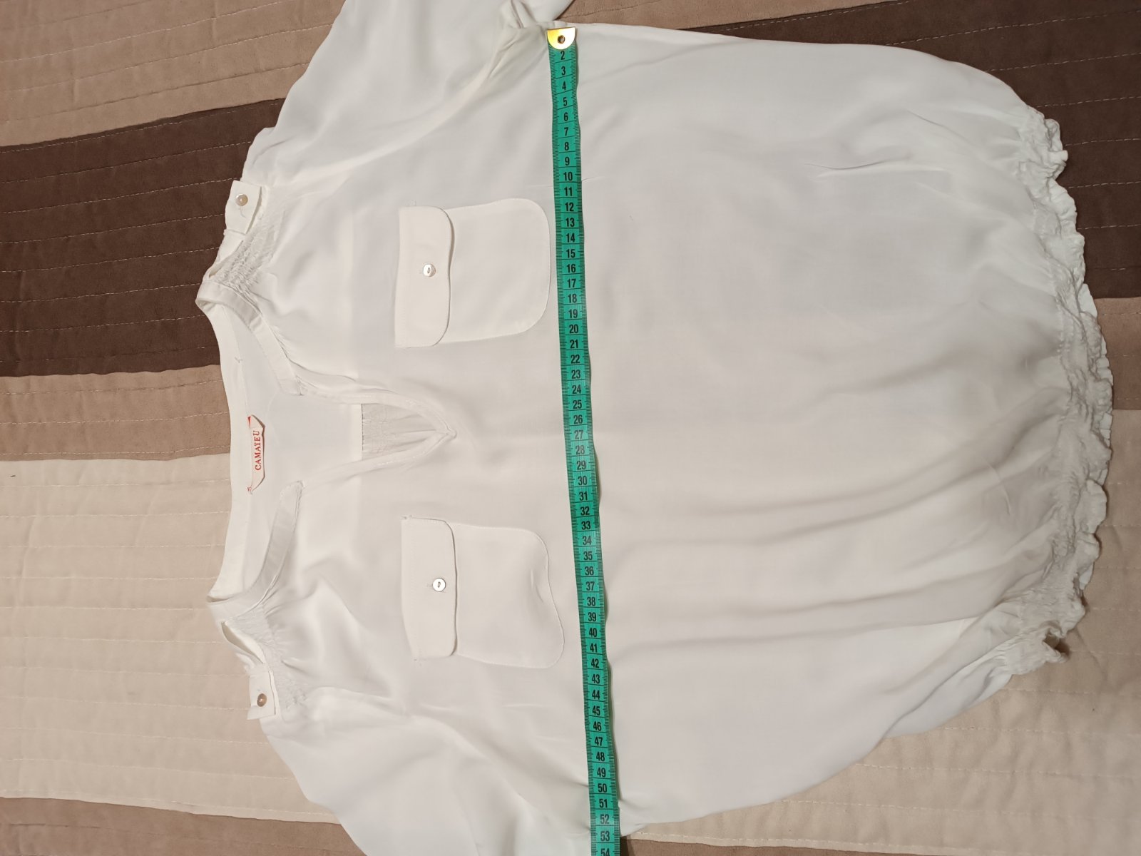 Malo nosený bez poskodenia veľmi pekne ukáže na postave moderný kúsok 3/4 rukáv, etiketu som odstrihla riaďte sa mierami Dlzka 59cm Sirka 54cm Dlzka rukáva od krku 50