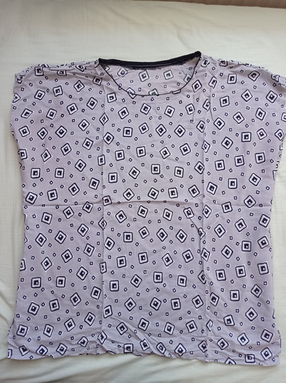 Predám túto šitú blúzu, veľkosť XL, pod pazuchami šírka 61cm, nižšie 59cm, dĺžka 69cm.