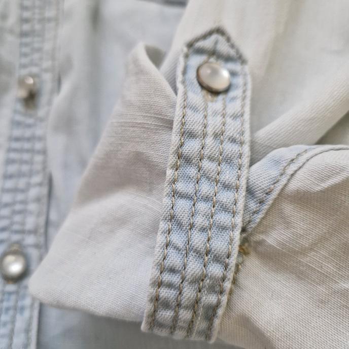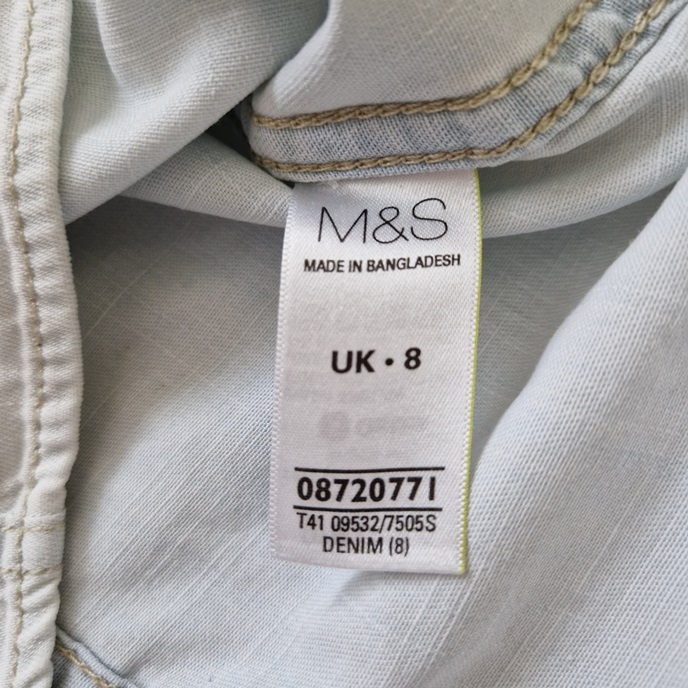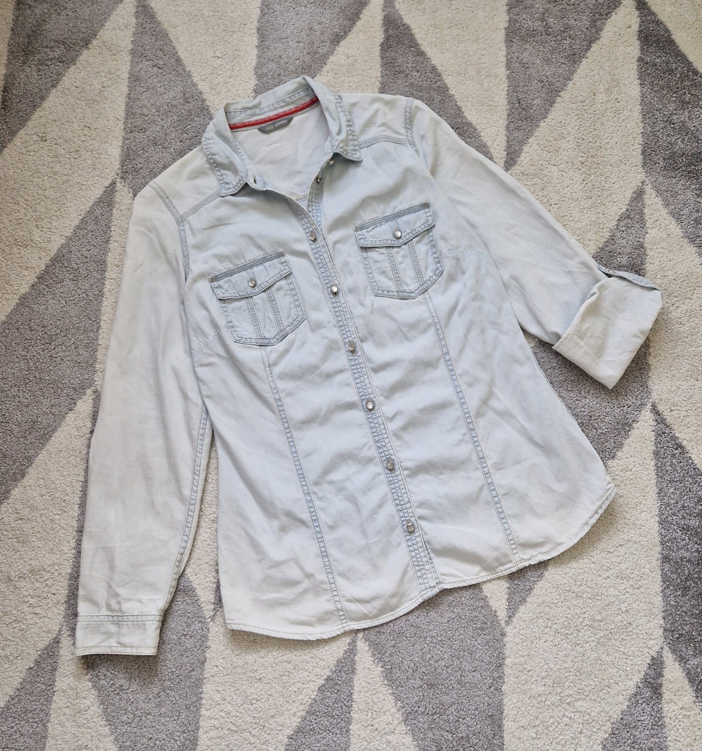 Stav dobrý, bez kazov. Rifľová košeľa s vyhŕňacími rukávmi MARKS&SPENCER. Veľkosť S. Rozmery: celková dĺžka 66cm, obvod hrudníka 92cm. Materiál: bavlna 100%.