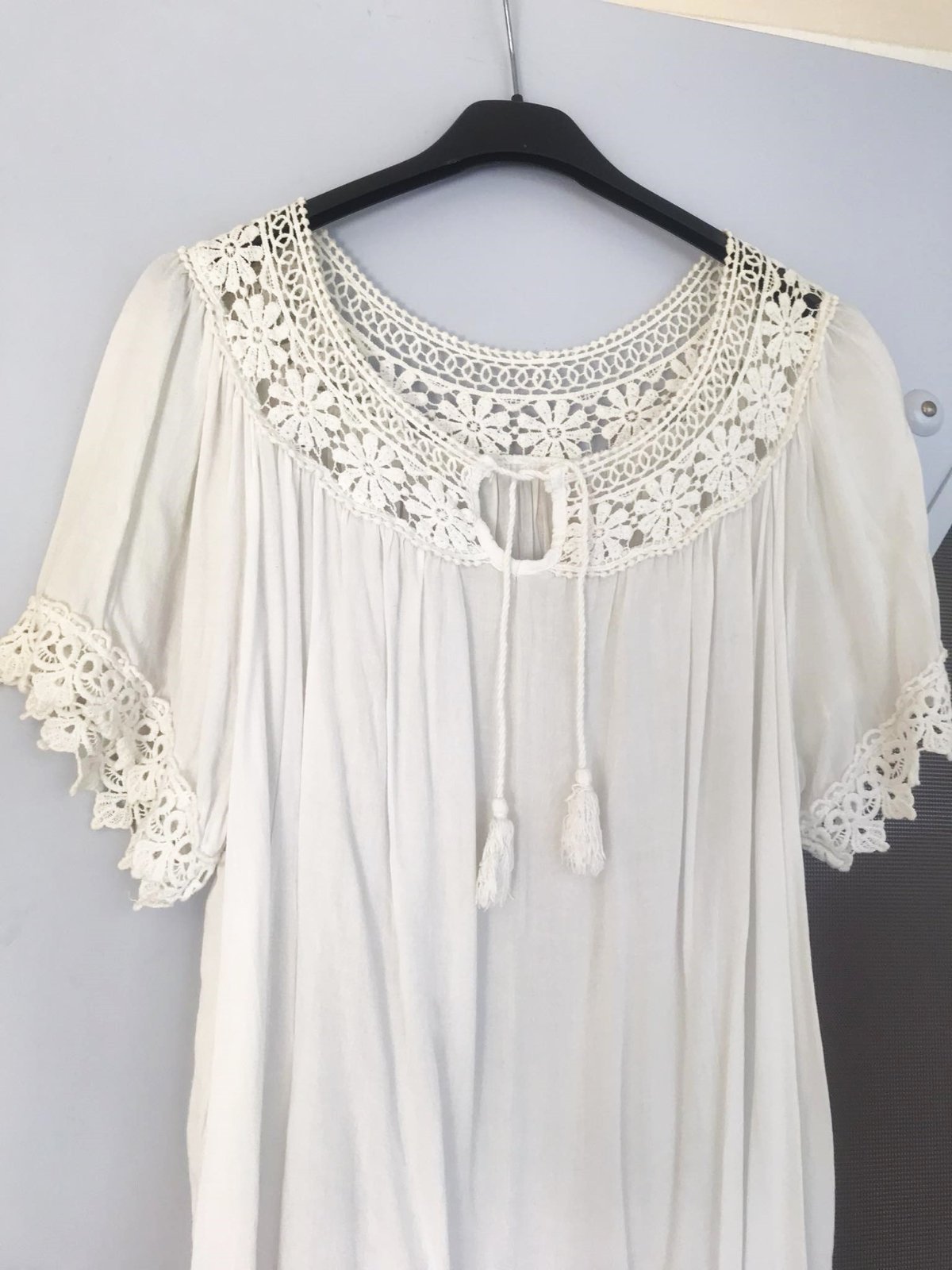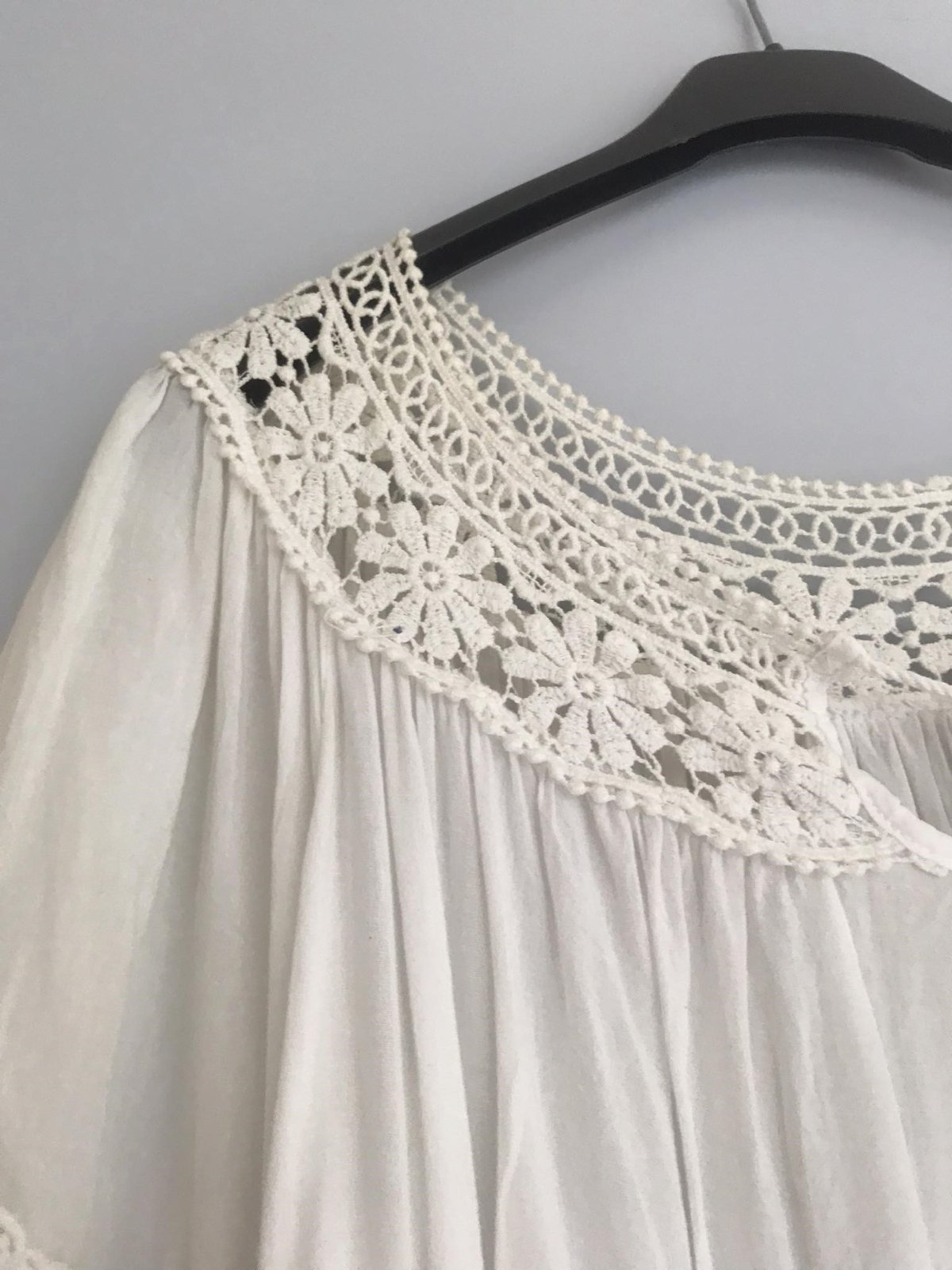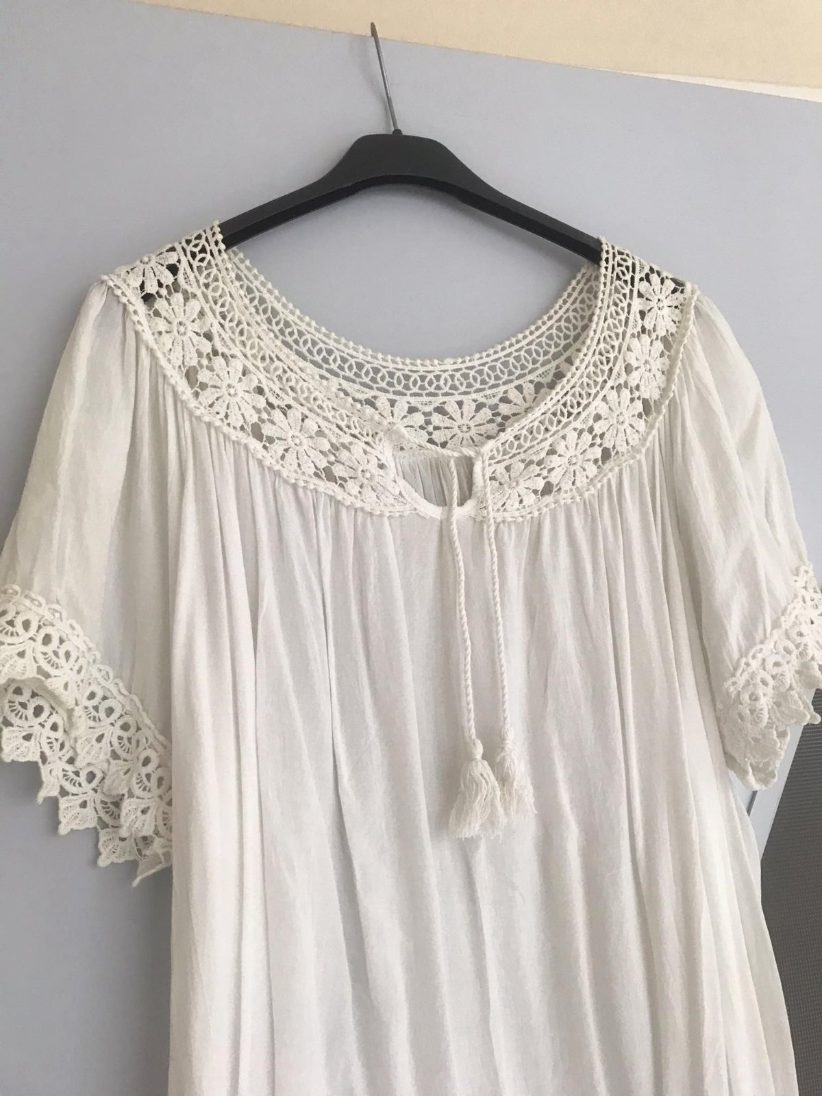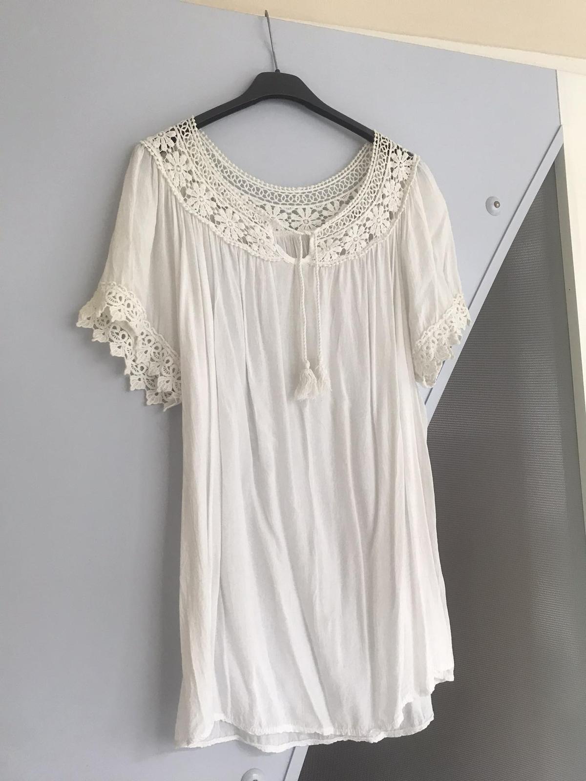 nádherná letná voľná blúzka dovezená z Talianska,100% naturálna viskóza, v top stave - garantujem,výborne sa hodí na zakrytie bruška aj pre tehotné,alebo po tehotenstve,perfektná na pláž na plavky ku kraťasom,krásne riešená,vhodná na M/L,lebo pekne padá a riasi