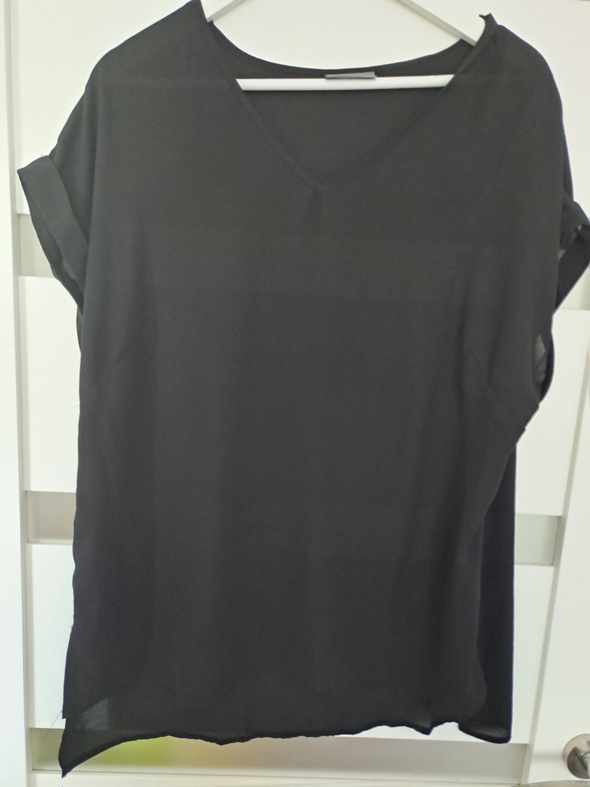 predám peknú blúzku na predu uvazovanie ,peknej čiernej farby , zle sa my fotilo ,preto taká fotka ,super stav, lahučké plátenko na predu volániky