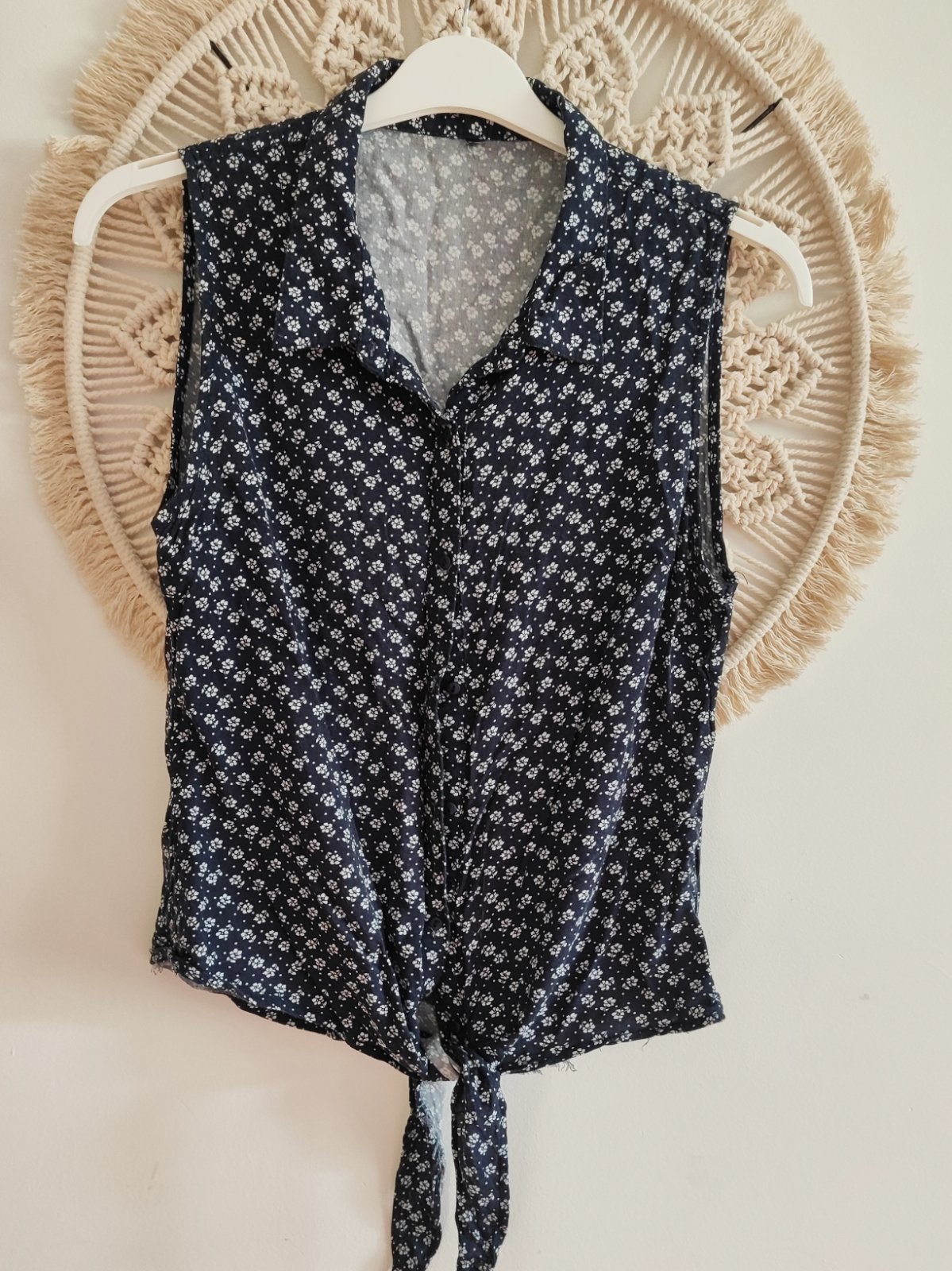 Tmavomodrá blúzka s ľahkého materiálu. Veľkosť: napísaná S, sedí skôr na M, alebo voľnejšie S Cena: 2€+poštovné Ak máte akékoľvek otázky neváhajte sa opýtať 😊