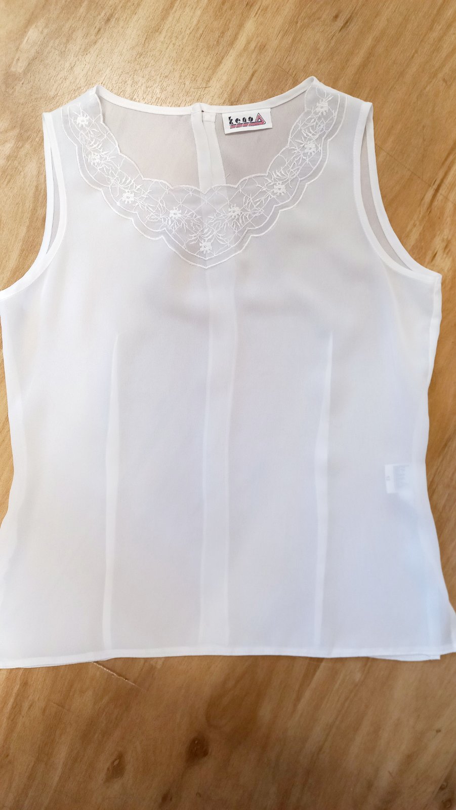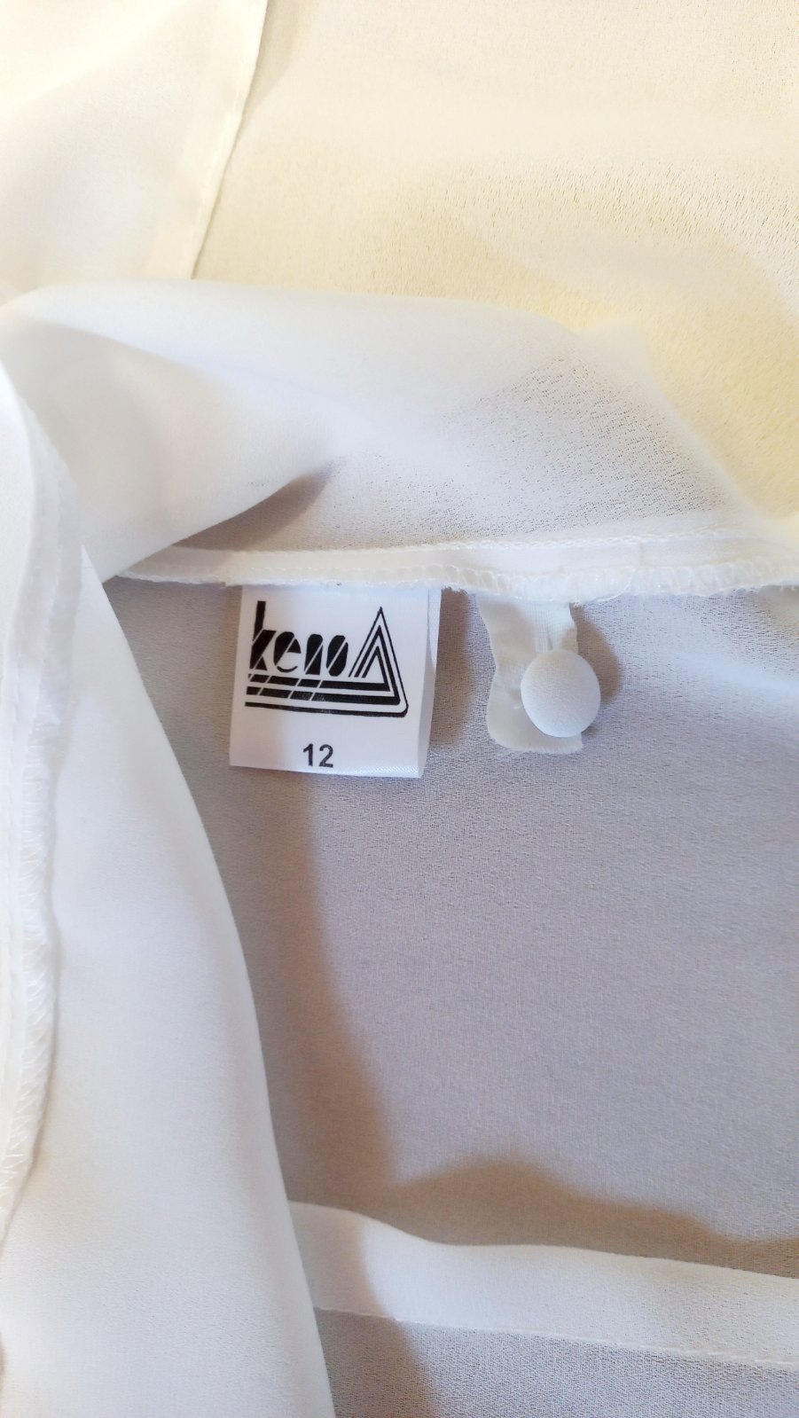 Krásny, luxusný top s čipkou. ZN: KENO. Dĺžka 58 cm šírka 47 cm. Na štítku je veľkost 12. To je velkost L, no možno aj na M veľkosť sedí, je to podla pohodlnosti. Treba sa zmerať. Kvalitná padavá a nekrčivá látka. Zapínanie vzadu.
