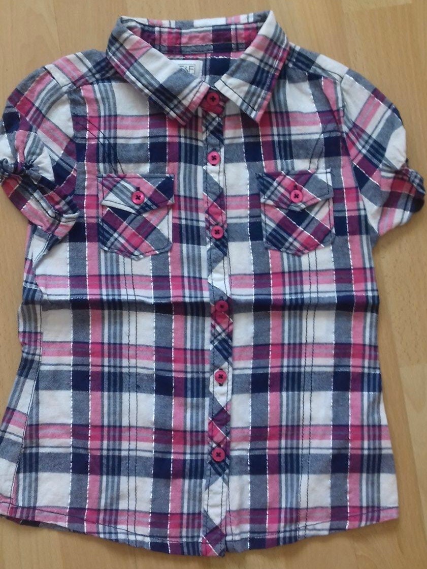 Farebná letná blúzočka so zapínaním na gombíky. Farba ako na detailnej fotke s vreckom. Top stav, ako nová, nosená veľmi málo. Veľkosť uvedená na štítku: 122, resp. 6-7 rokov.