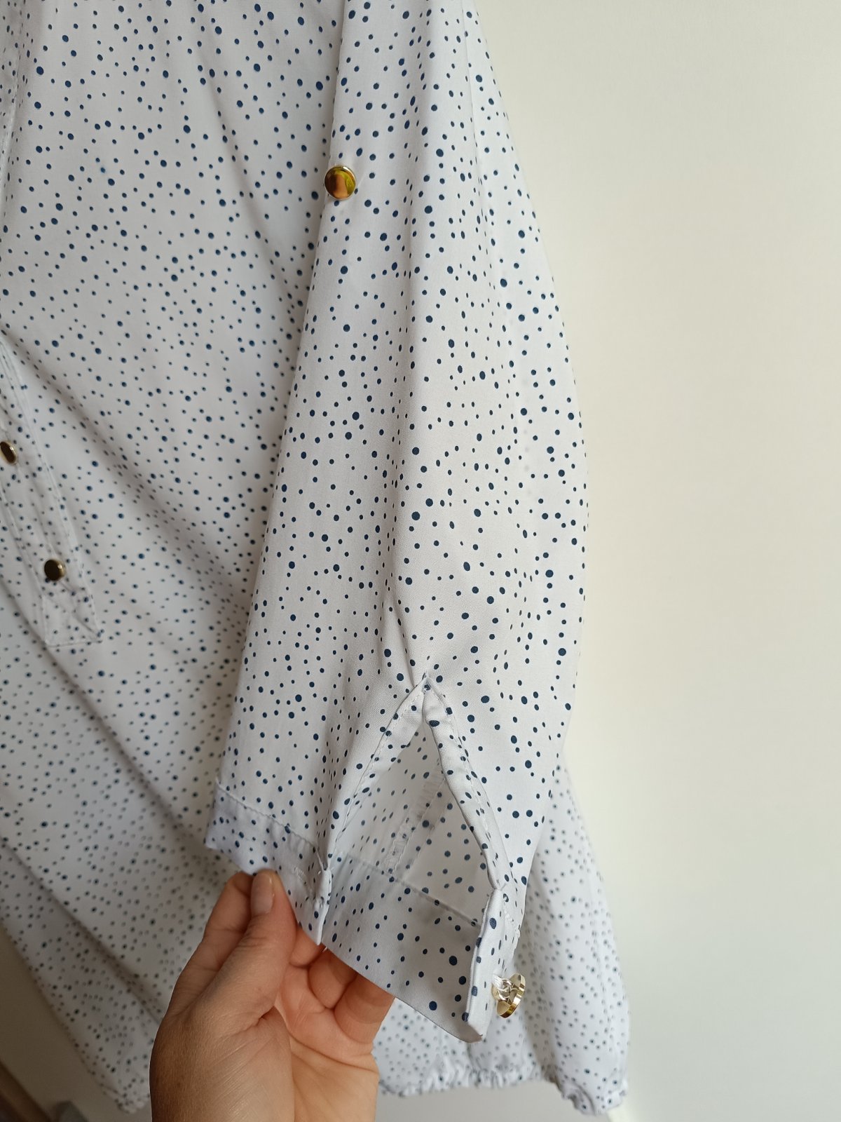 Blúzka s 3/4 rukávom je veľkosť 40. Bola oblečená len raz je ako nová. Spodok blúzky je na gumičku.