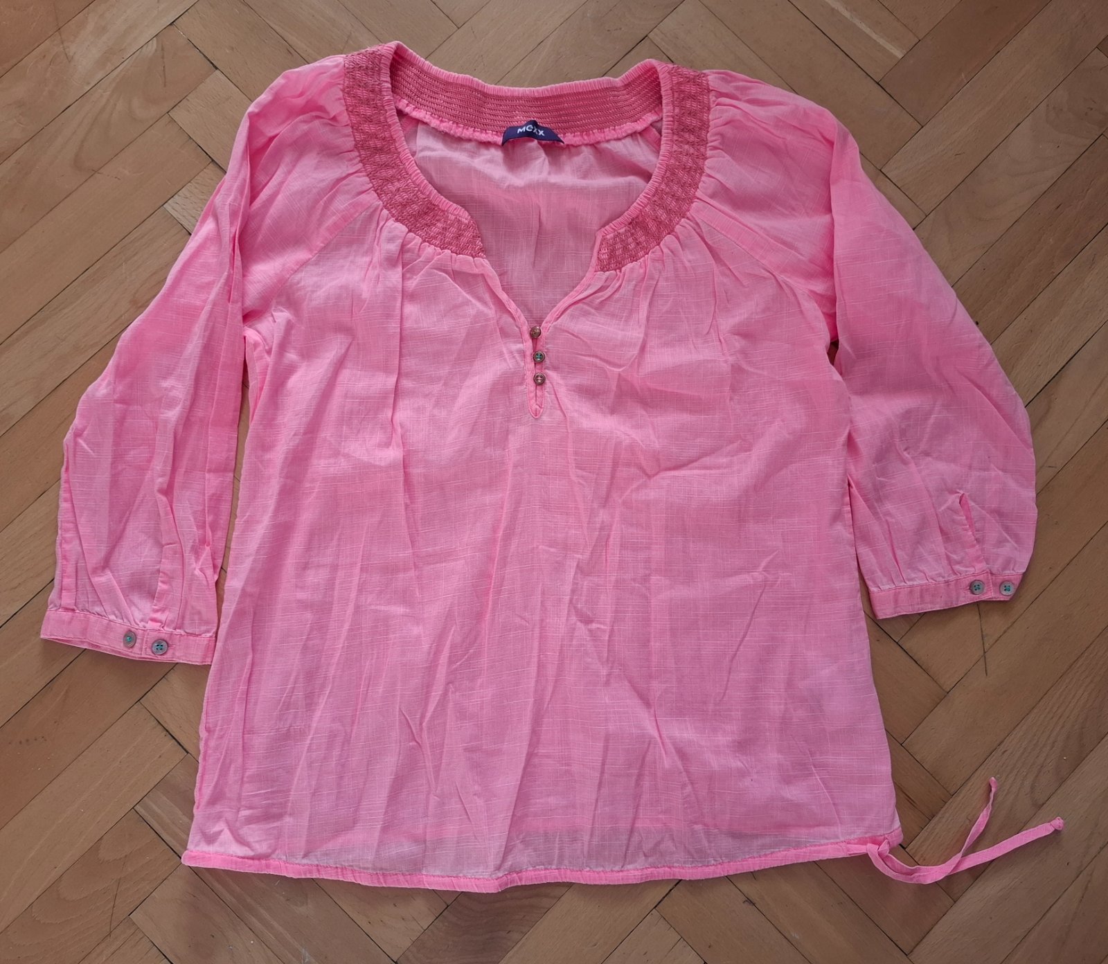MEXX ružová elastická košeľa S výborný stav, až na jemné svetlejšie prúžky na spodnej časti+zozadu-vid foto-neviem z čoho, preto cena prispôsobená. Pri nosení-nie je vidieť. dlžka: 57cm rukáv: 58cm...